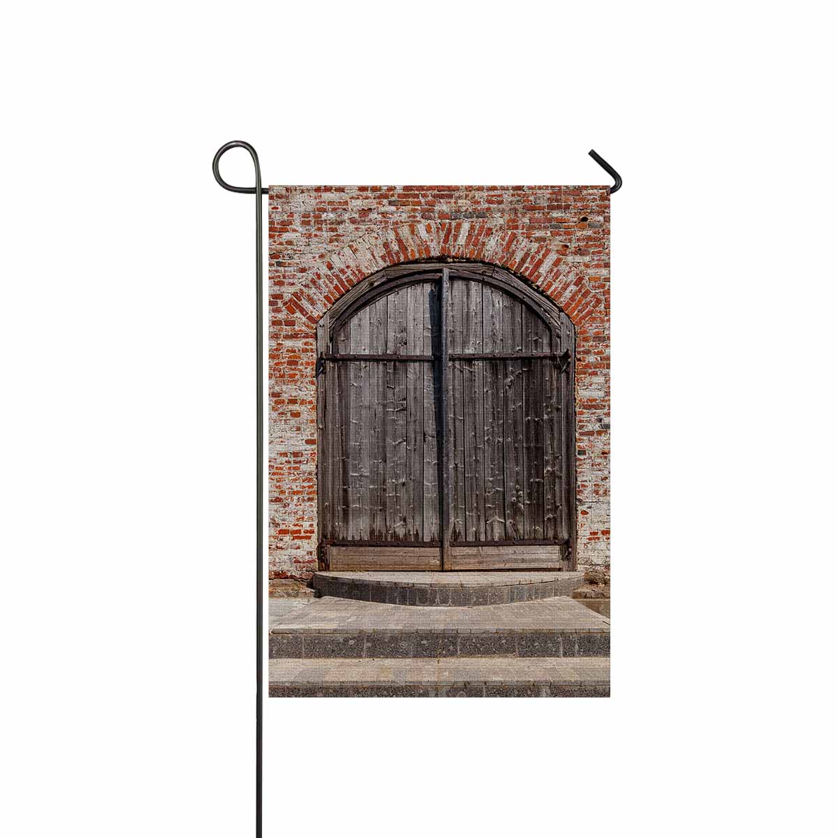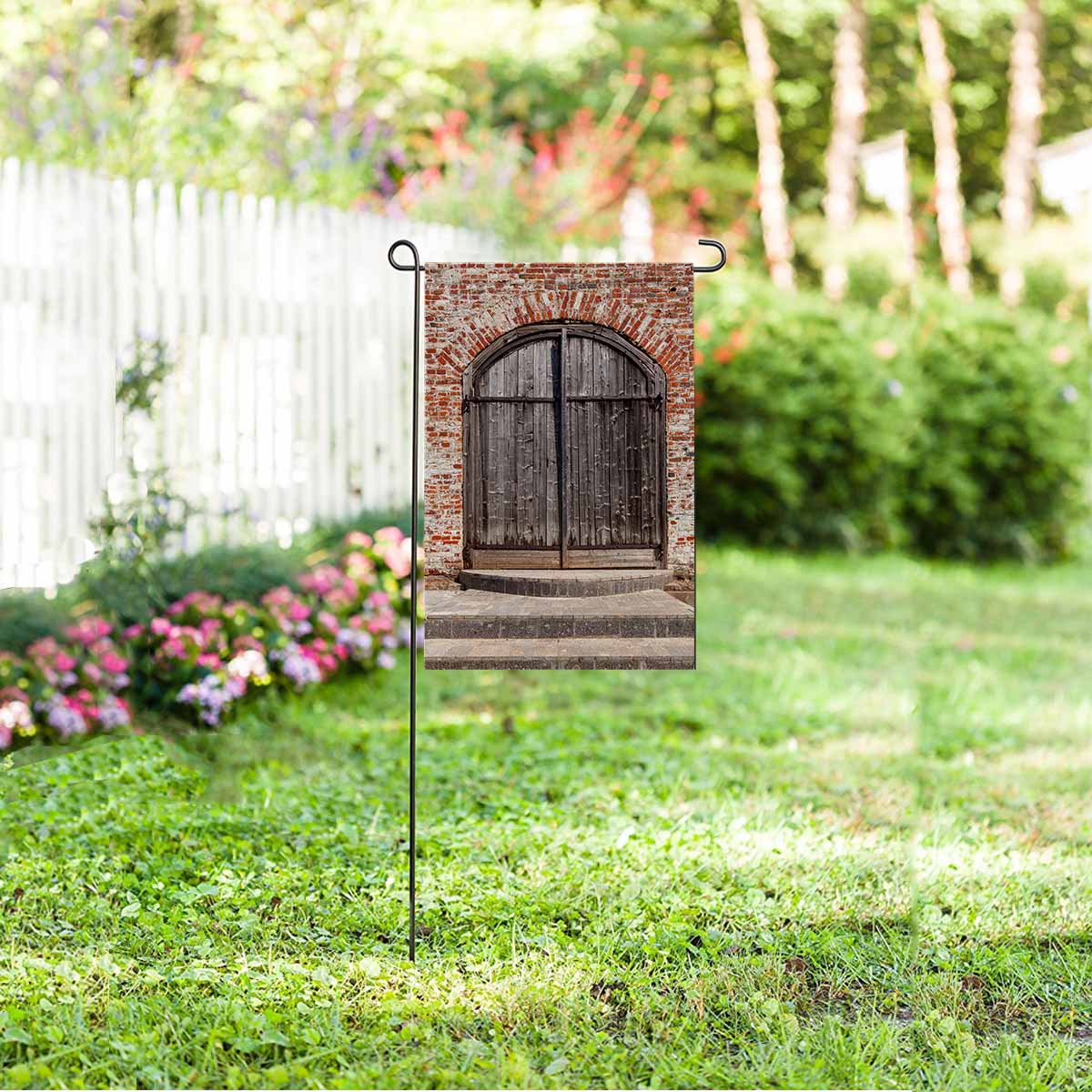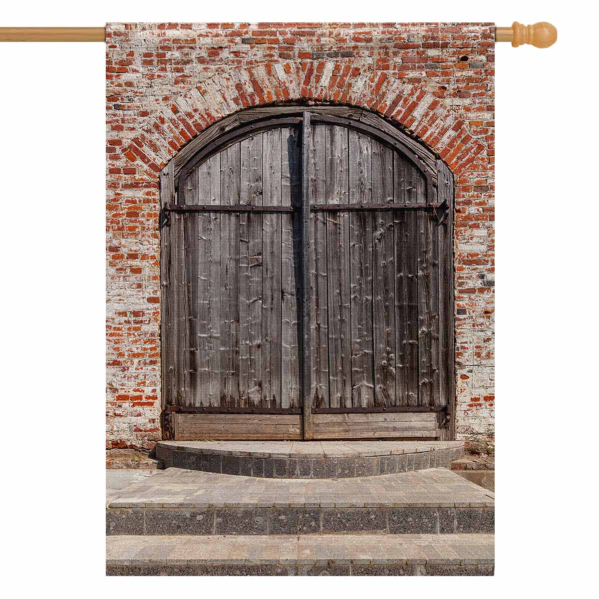 Garden Flags printed rustic themed with Old weathered wooden gate