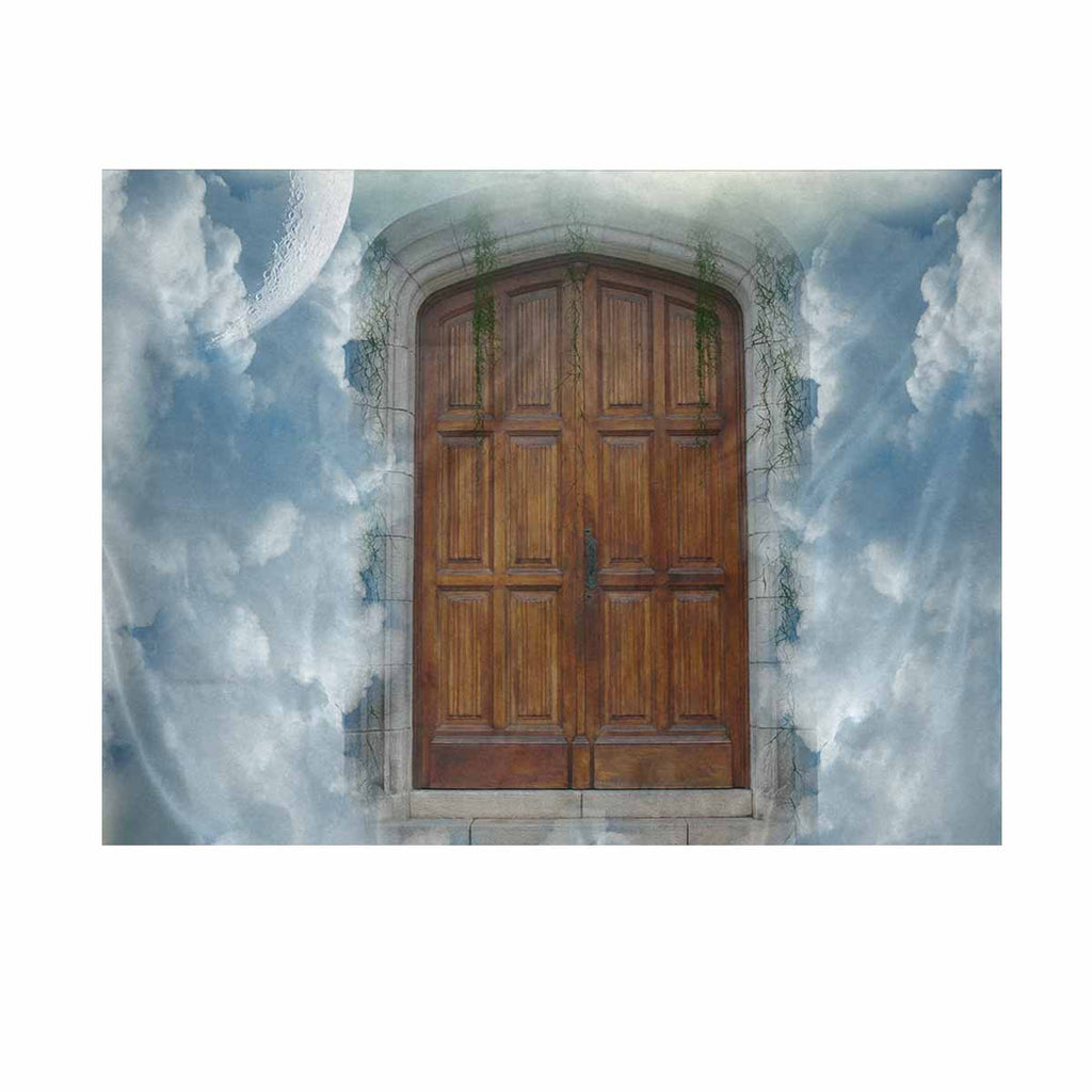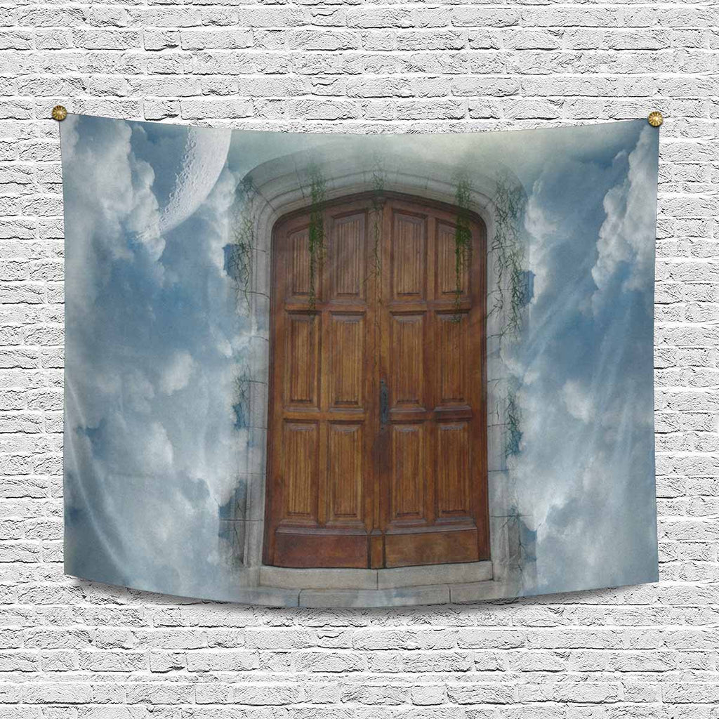 Rustic themed Wall Tapestries printed heaven door with clouds and big moon