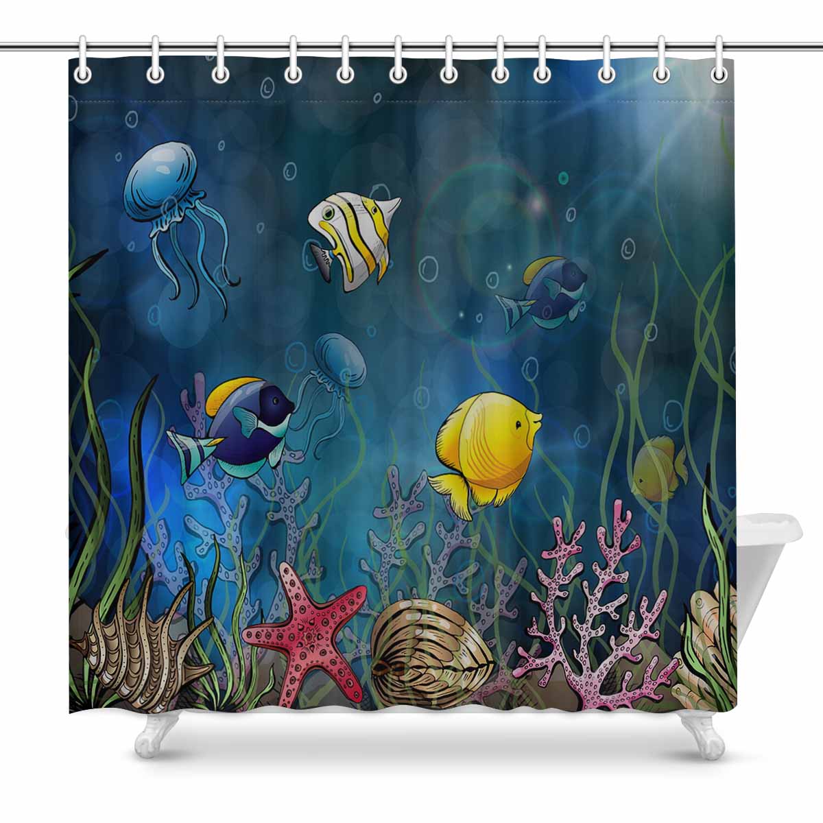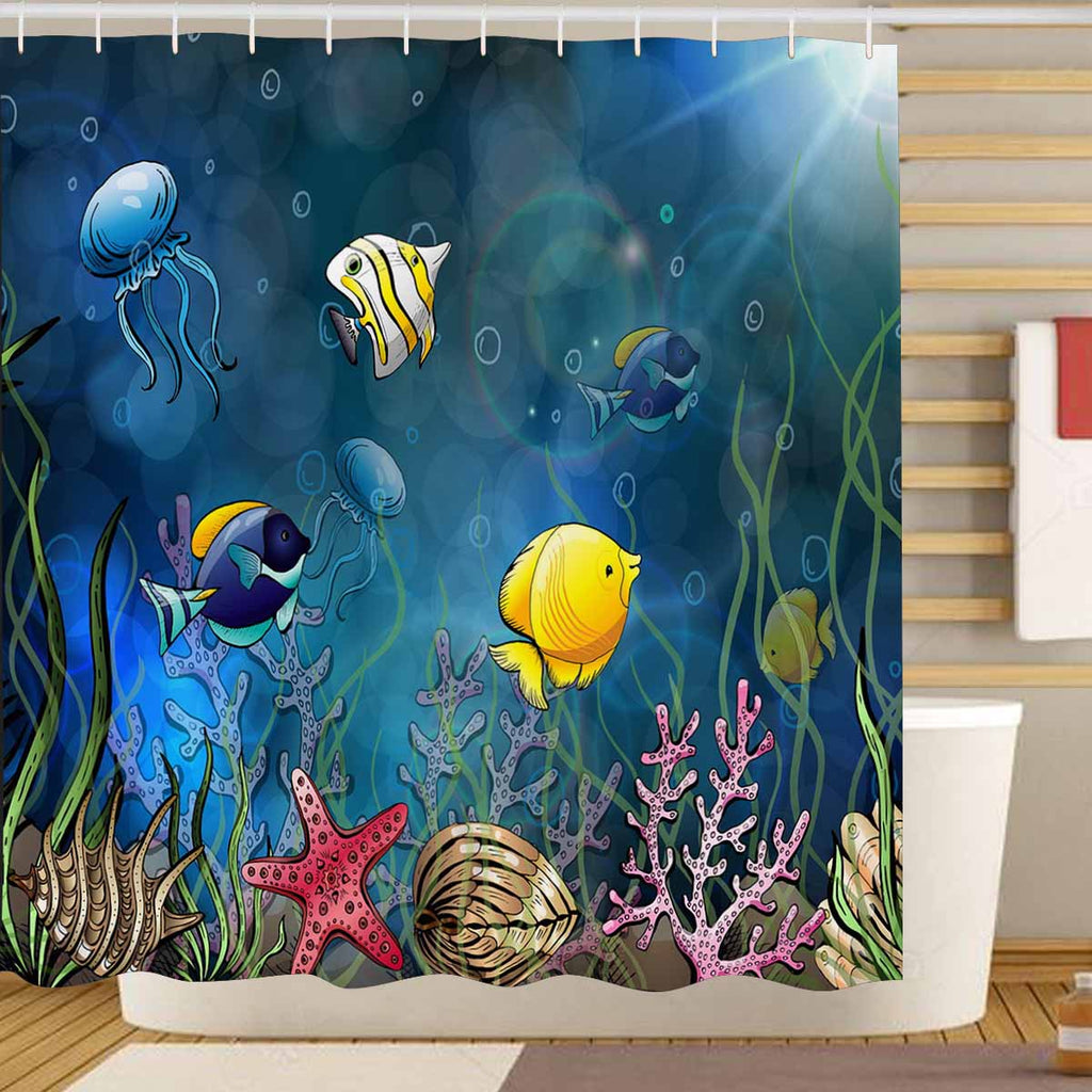 Seaworld themed print on shower curtains for bathroom, create a brilliant atmosphere in your bathroom, include a selection of different stylish and custom-made designs for your bath decoration.