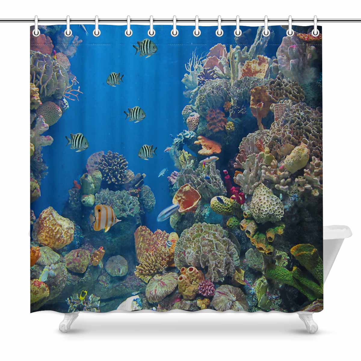 Seaworld themed print on shower curtains for bathroom, create a brilliant atmosphere in your bathroom, include a selection of different stylish and custom-made designs for your bath decoration.