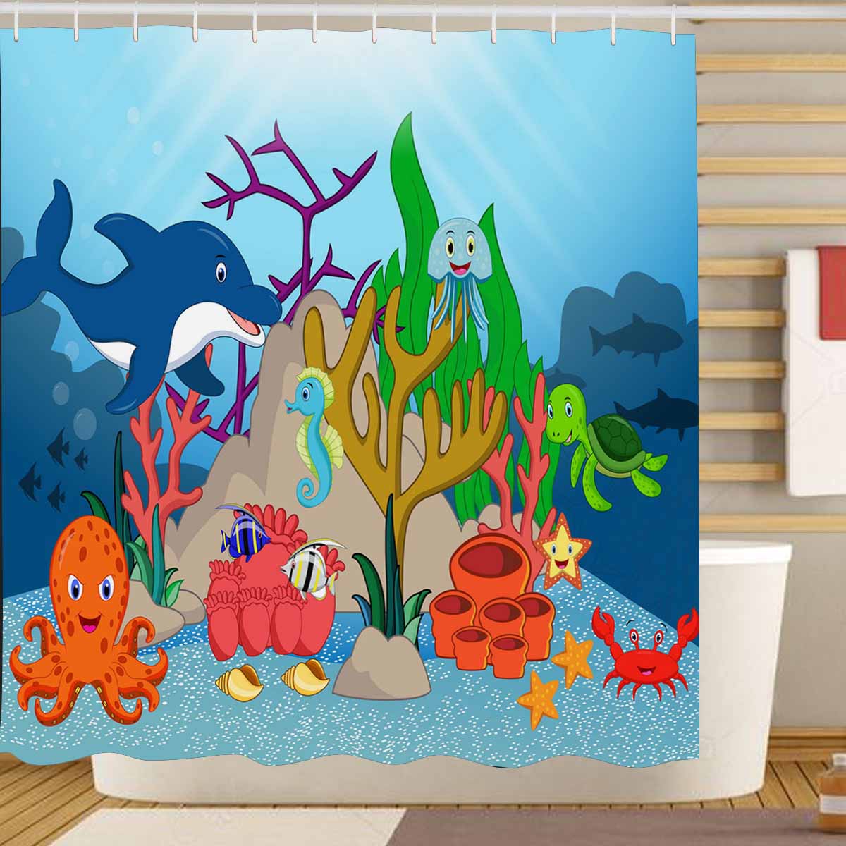Seaworld themed print on shower curtains for bathroom, create a brilliant atmosphere in your bathroom, include a selection of different stylish and custom-made designs for your bath decoration.