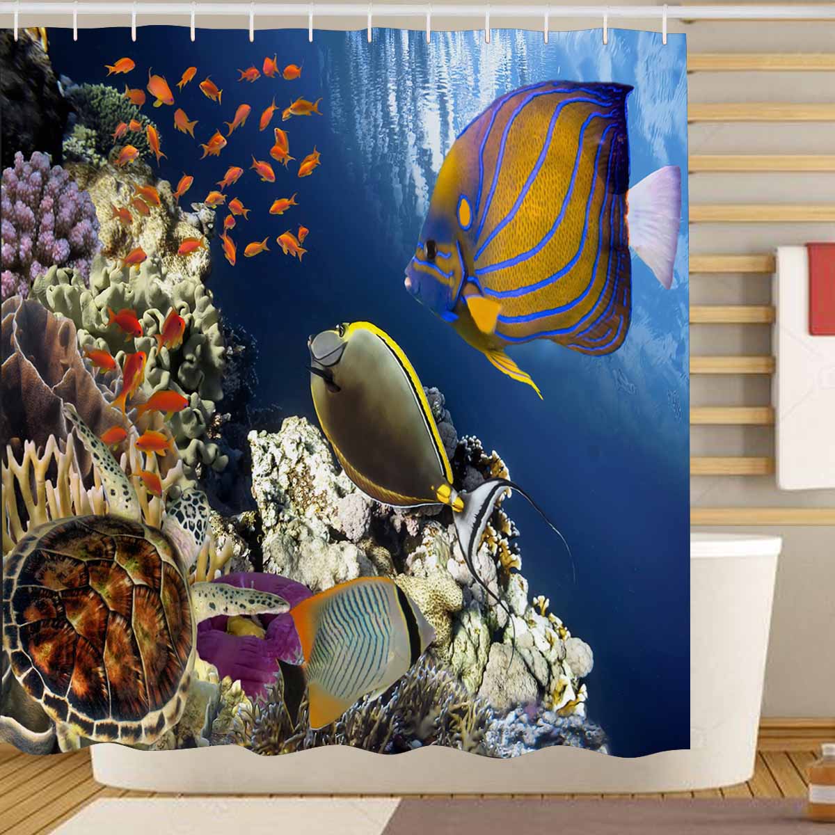 Seaworld themed print on shower curtains for bathroom, create a brilliant atmosphere in your bathroom, include a selection of different stylish and custom-made designs for your bath decoration.