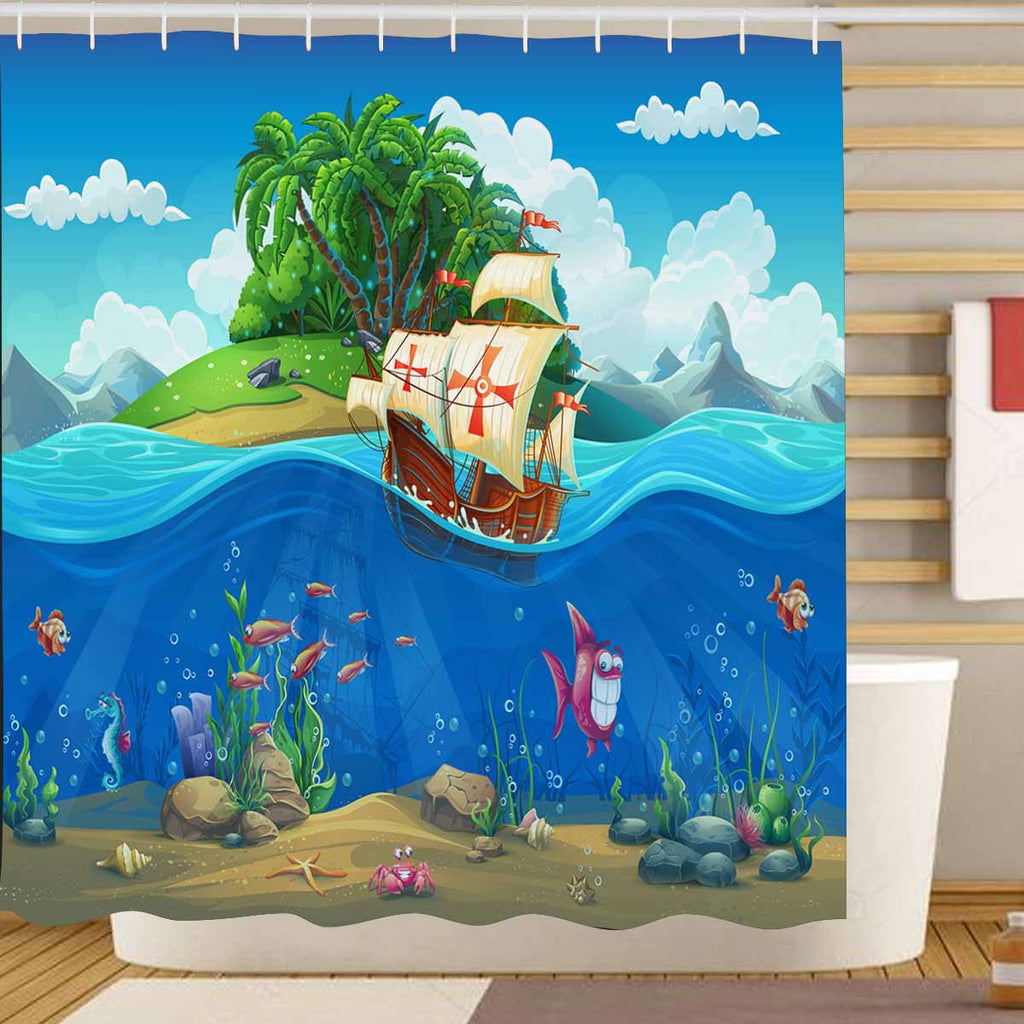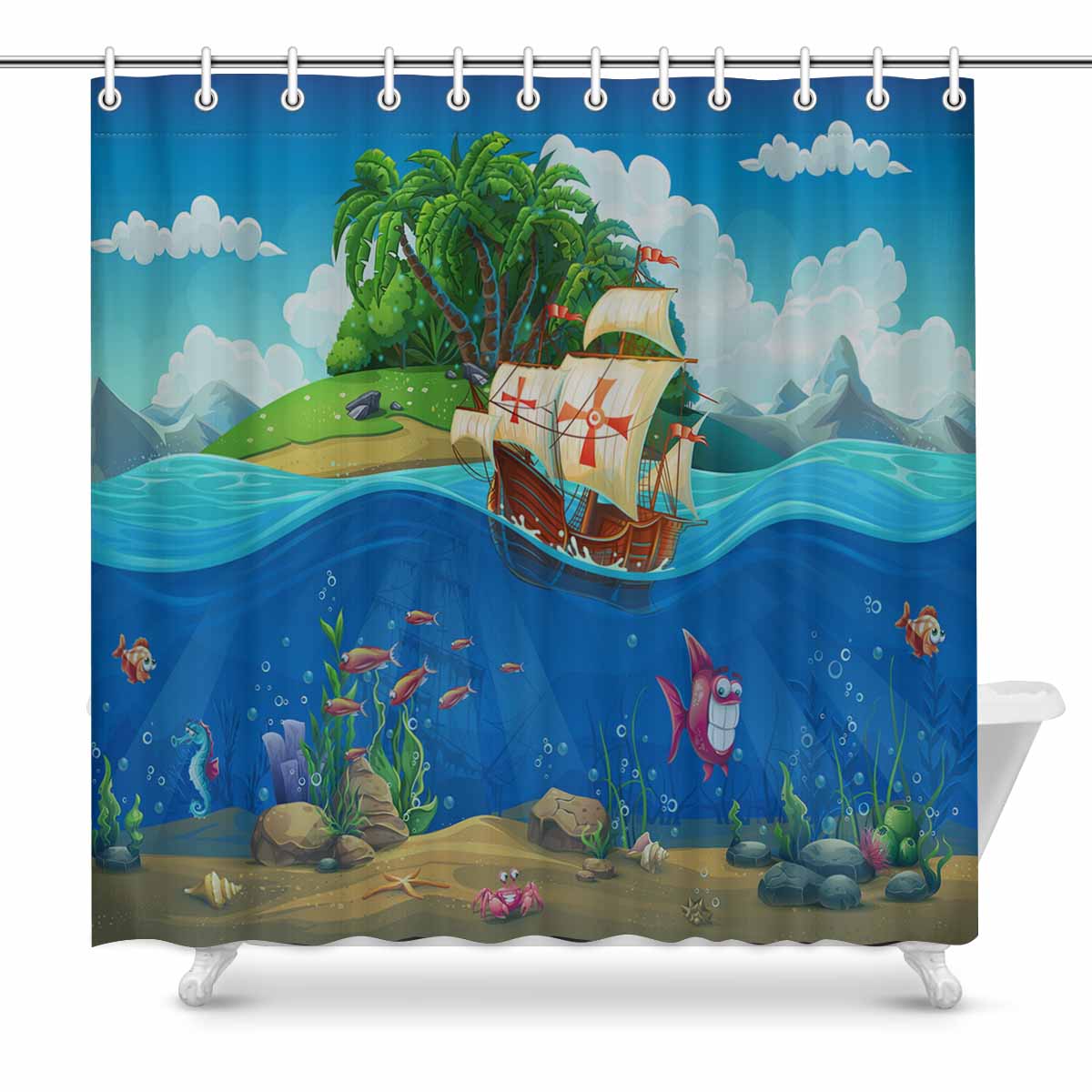 Seaworld themed print on shower curtains for bathroom, create a brilliant atmosphere in your bathroom, include a selection of different stylish and custom-made designs for your bath decoration.