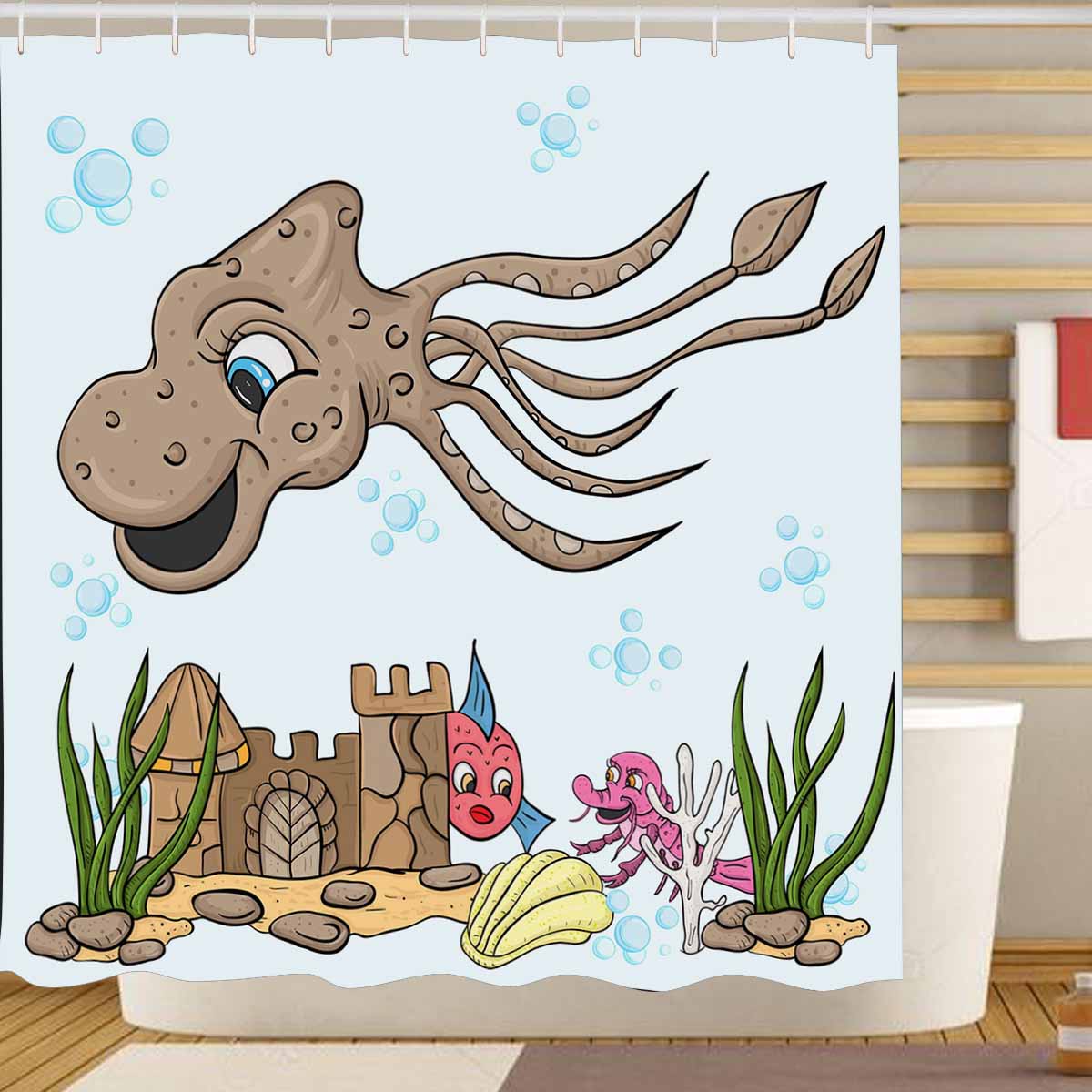 Seaworld Shower Curtains print with large octopus squid