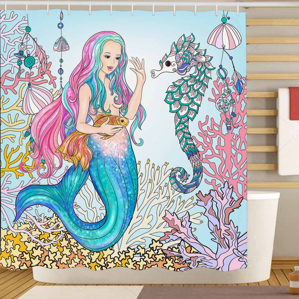 Seaworld Shower Curtains print with mermaid with gold fish