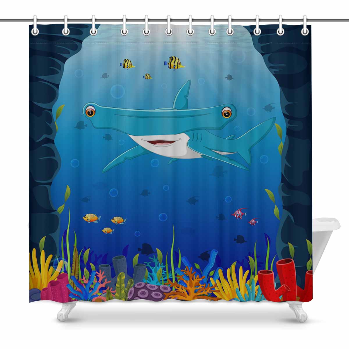 Seaworld Shower Curtains print with Sphyrna mokarran