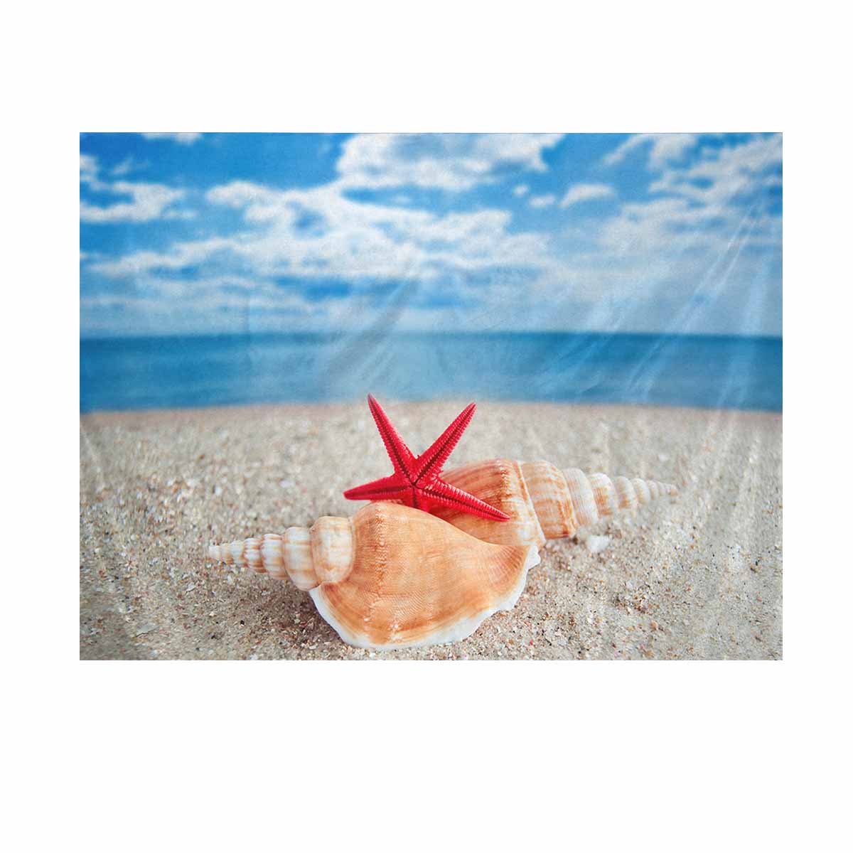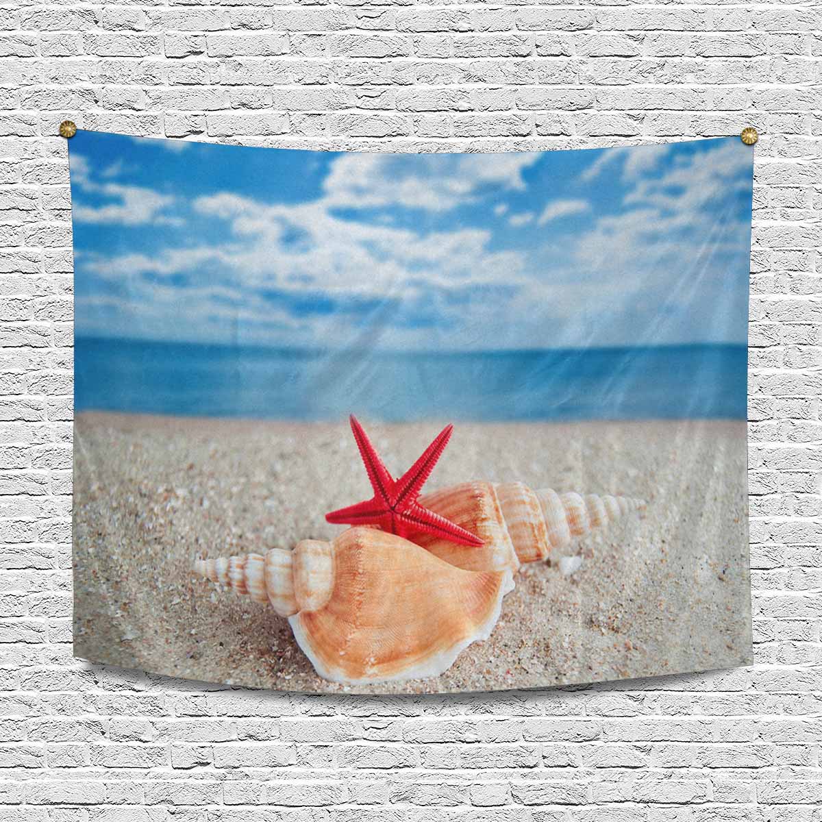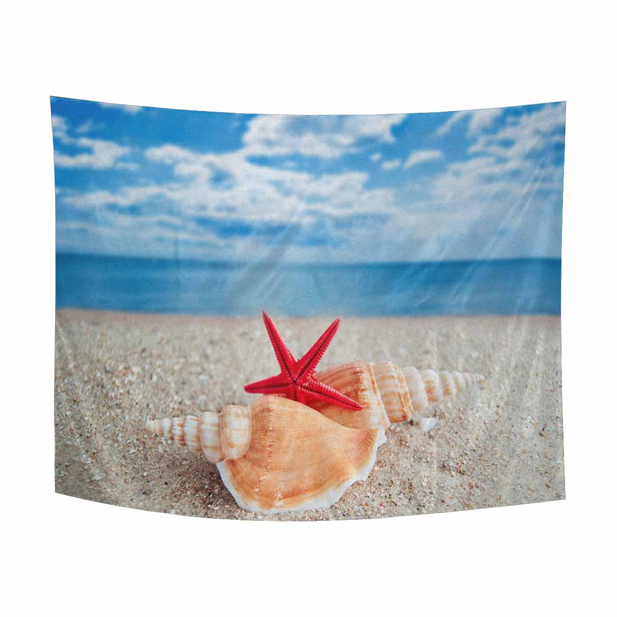 Tropical themed Wall Tapestries printed Shells and Starfish on Beach