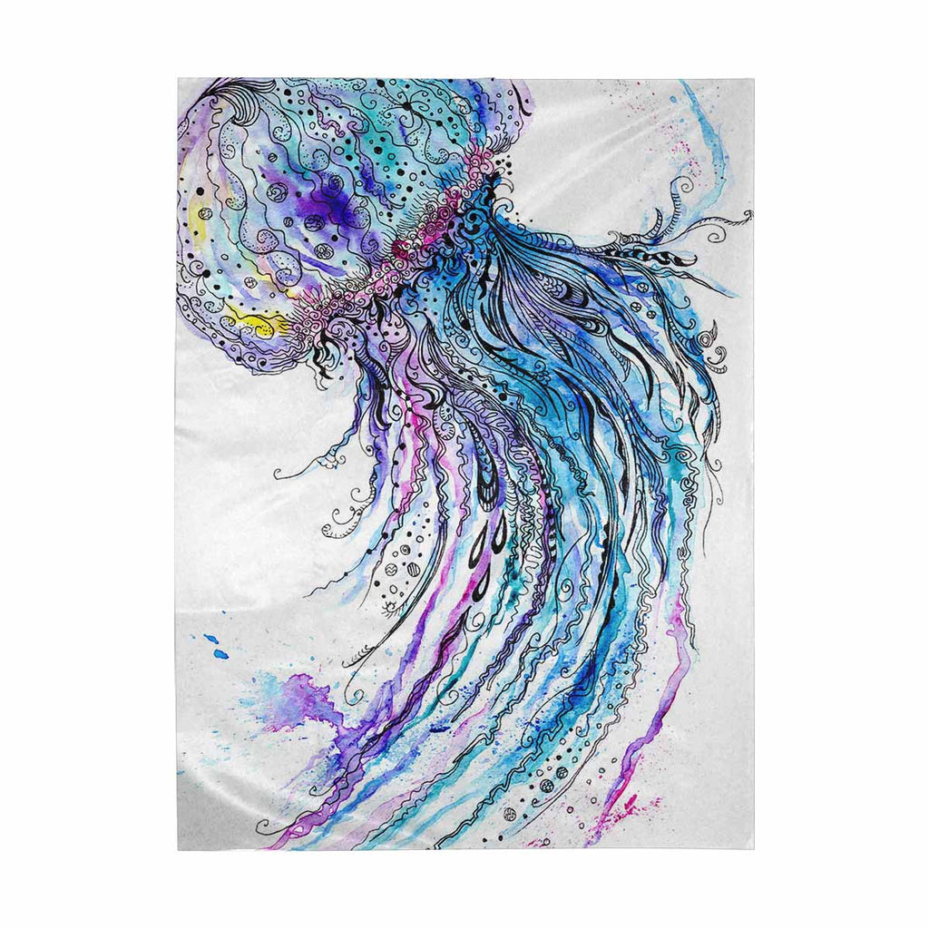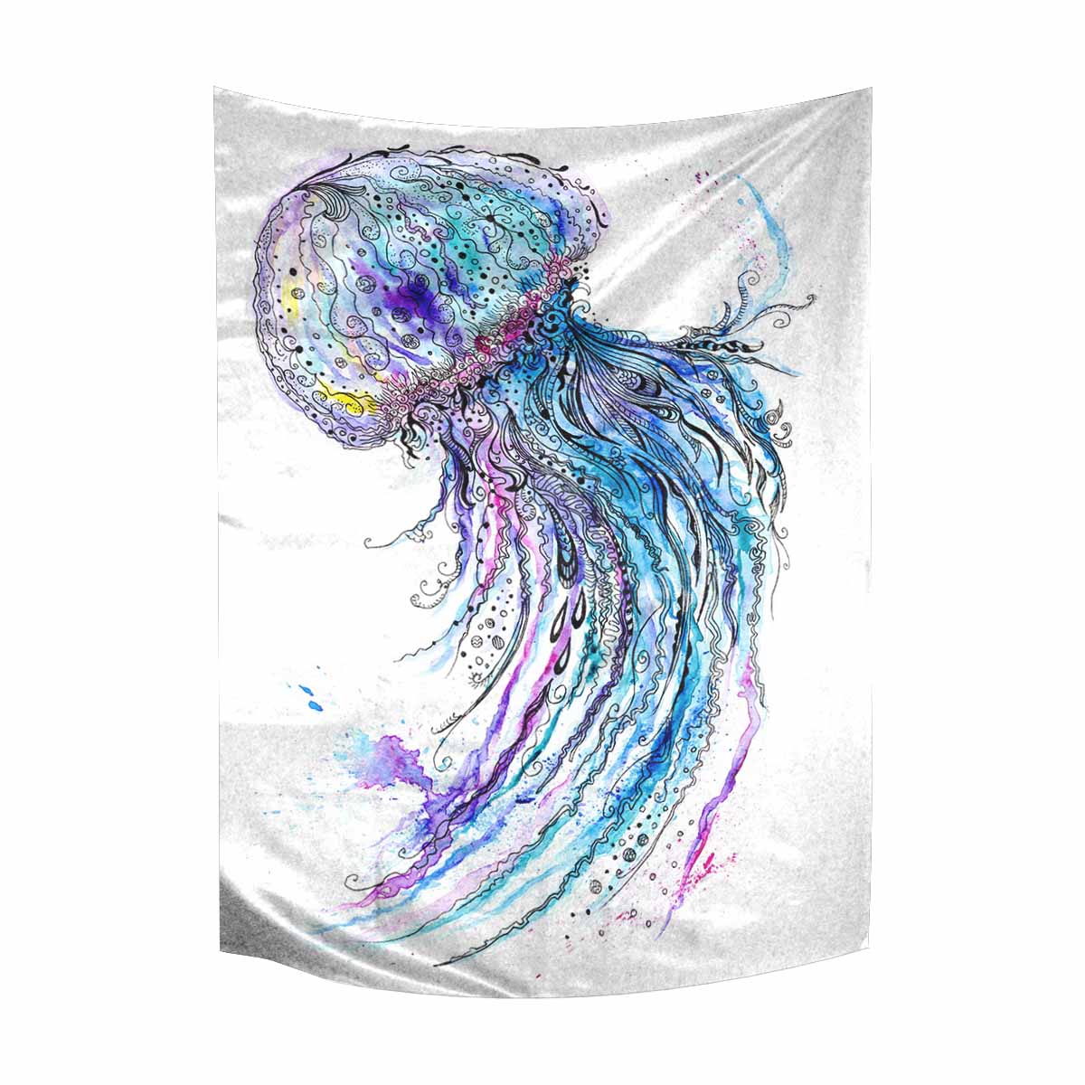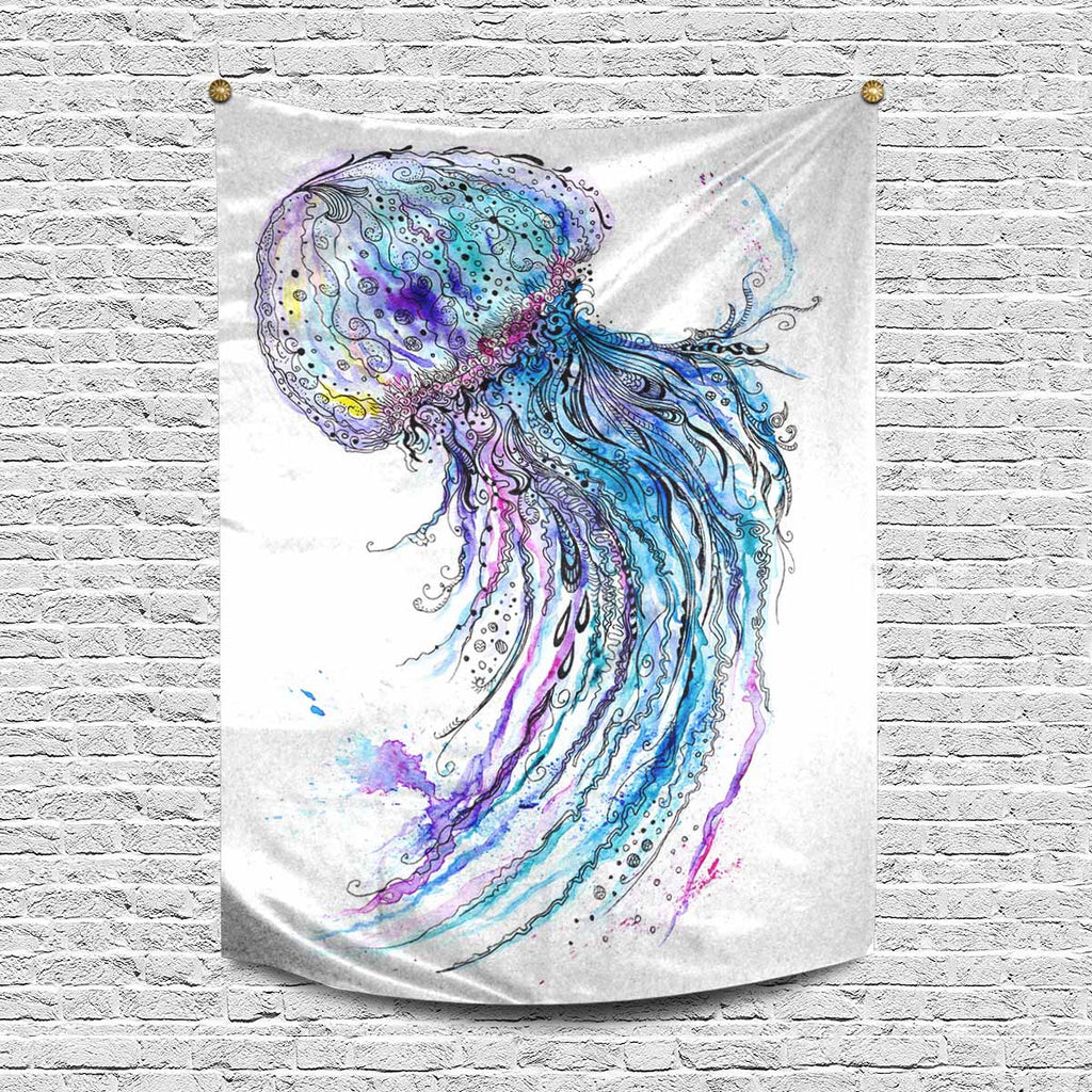 Animals themed long Wall Tapestry print with Jelly fish watercolor and ink painting