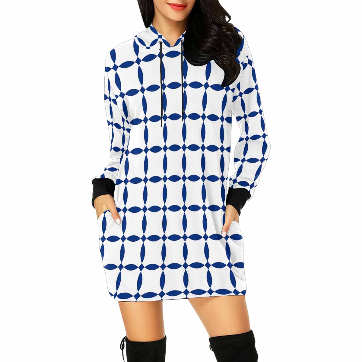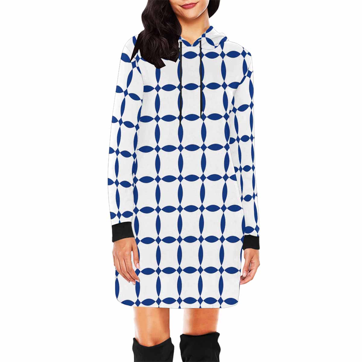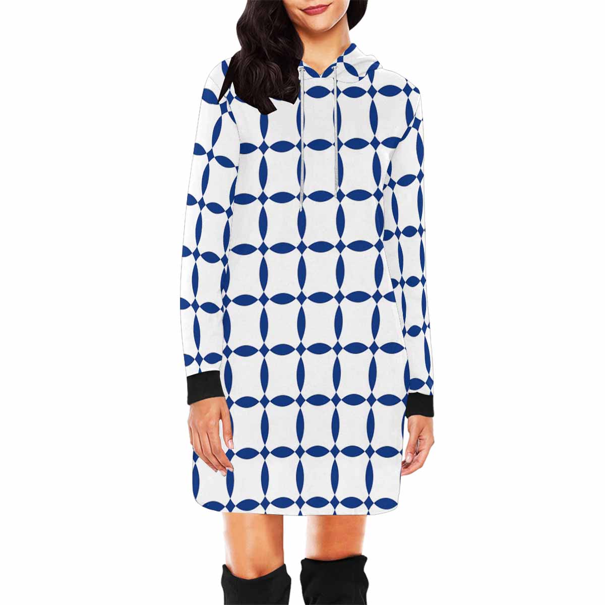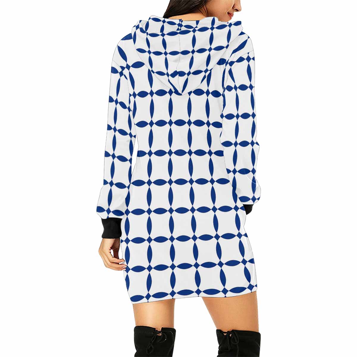 Blue and white seamless pattern print on Women's Mini Dress Hoodies