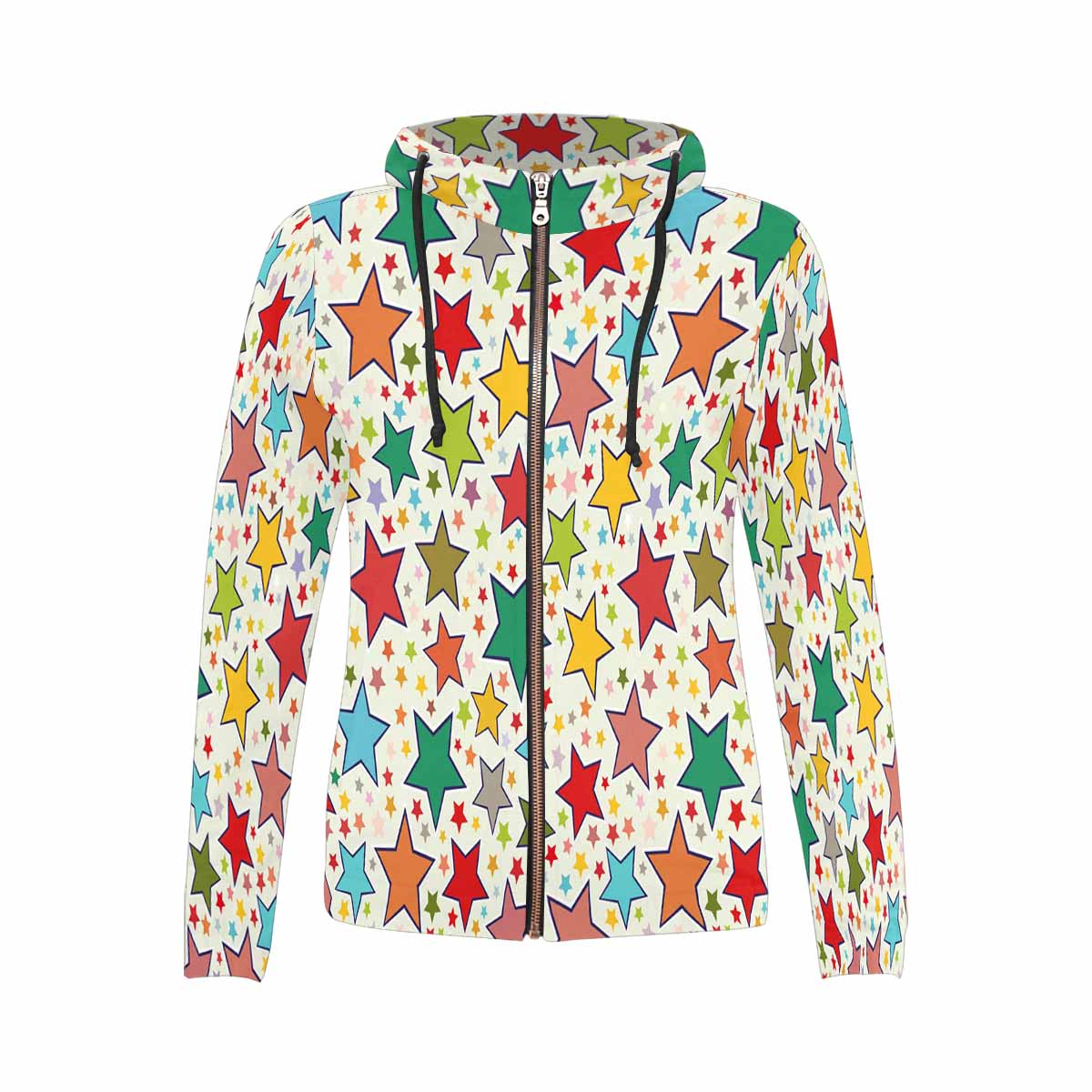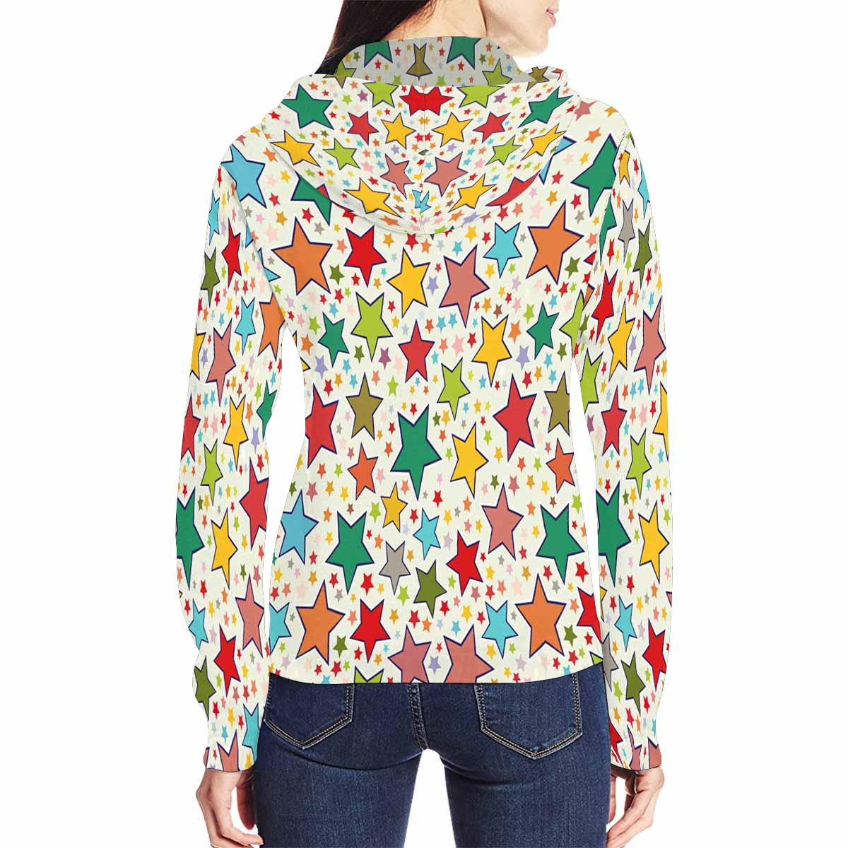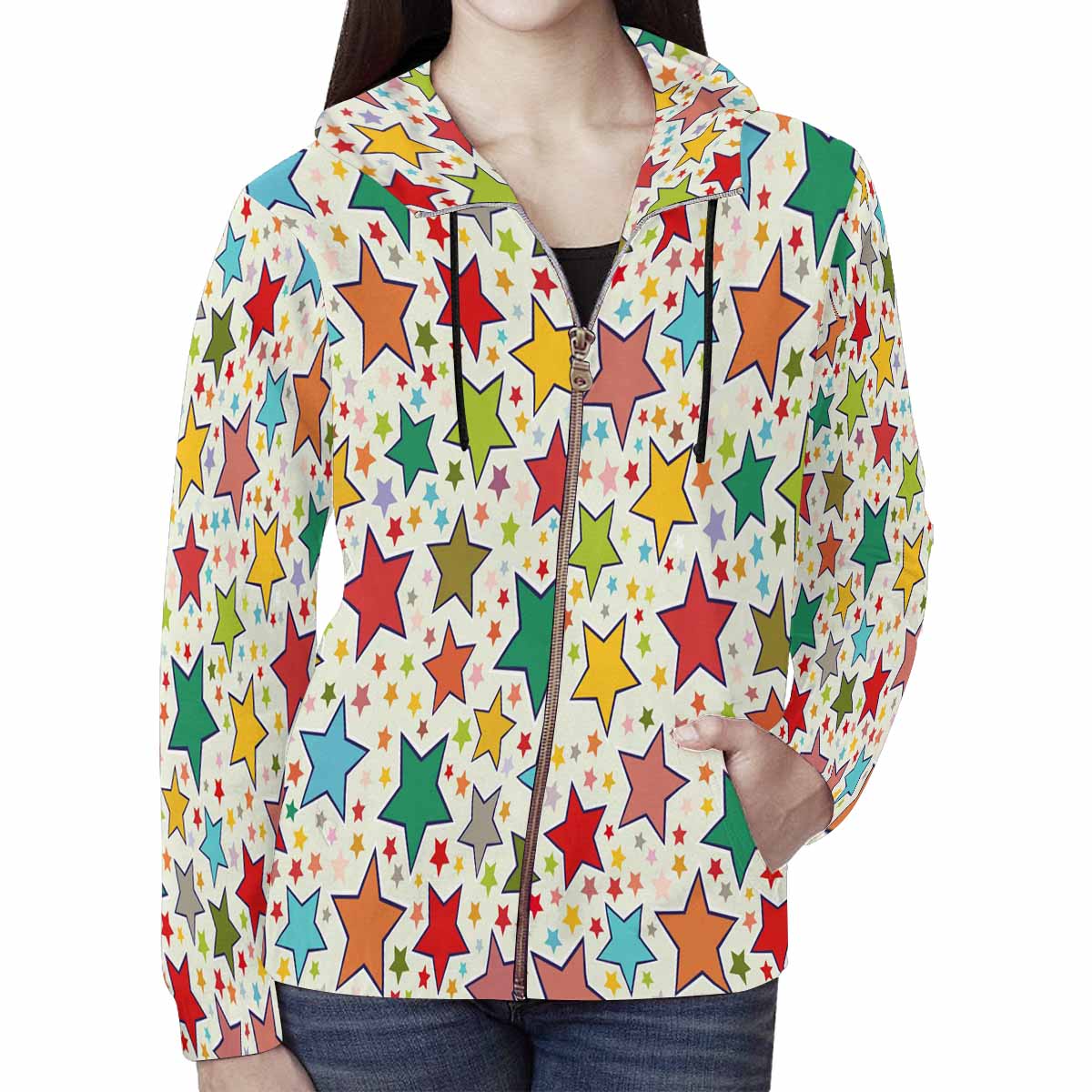 Women's Full Zip Hoodies print with colorful Stars pattern