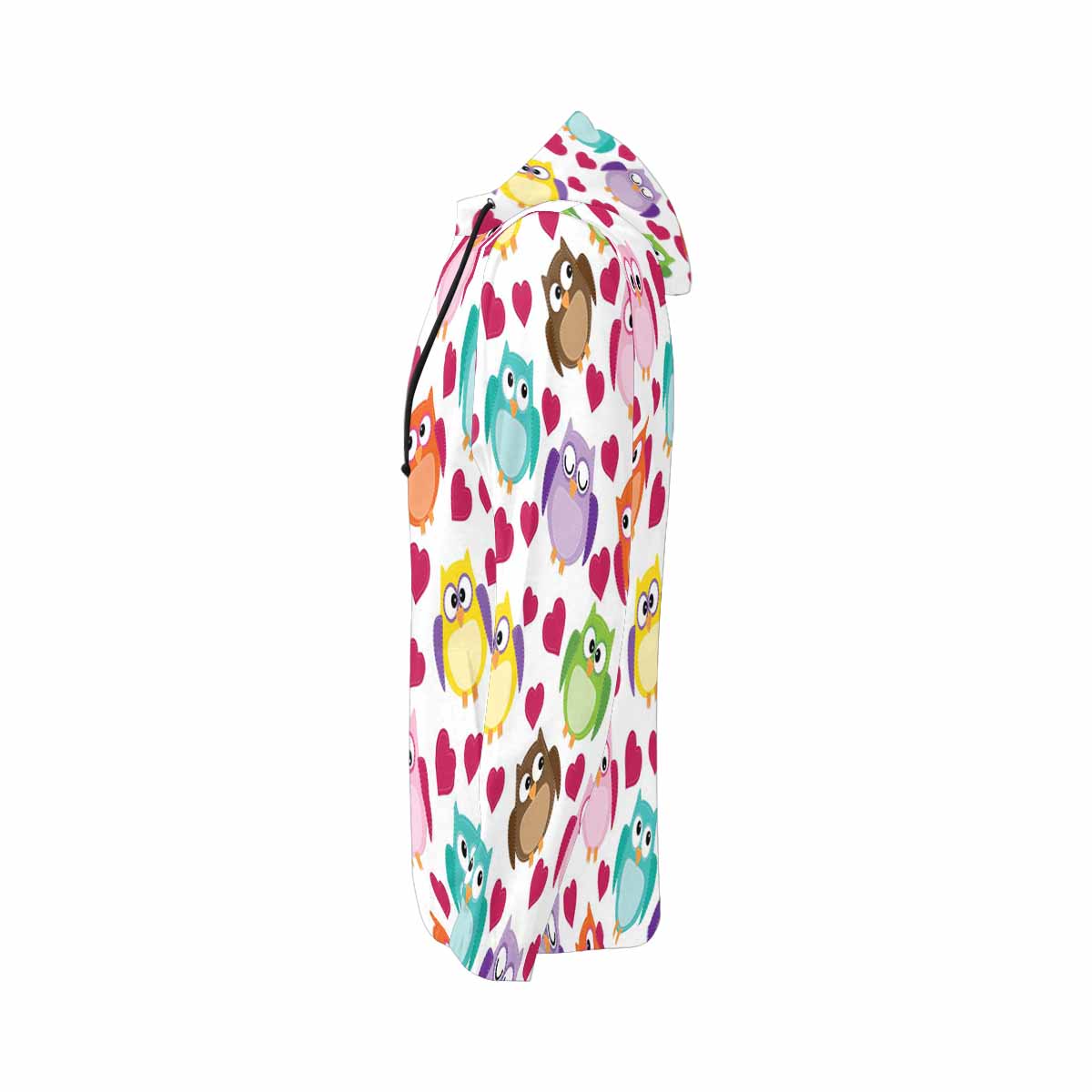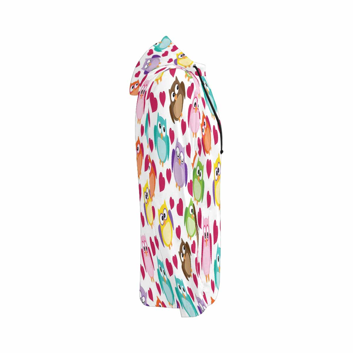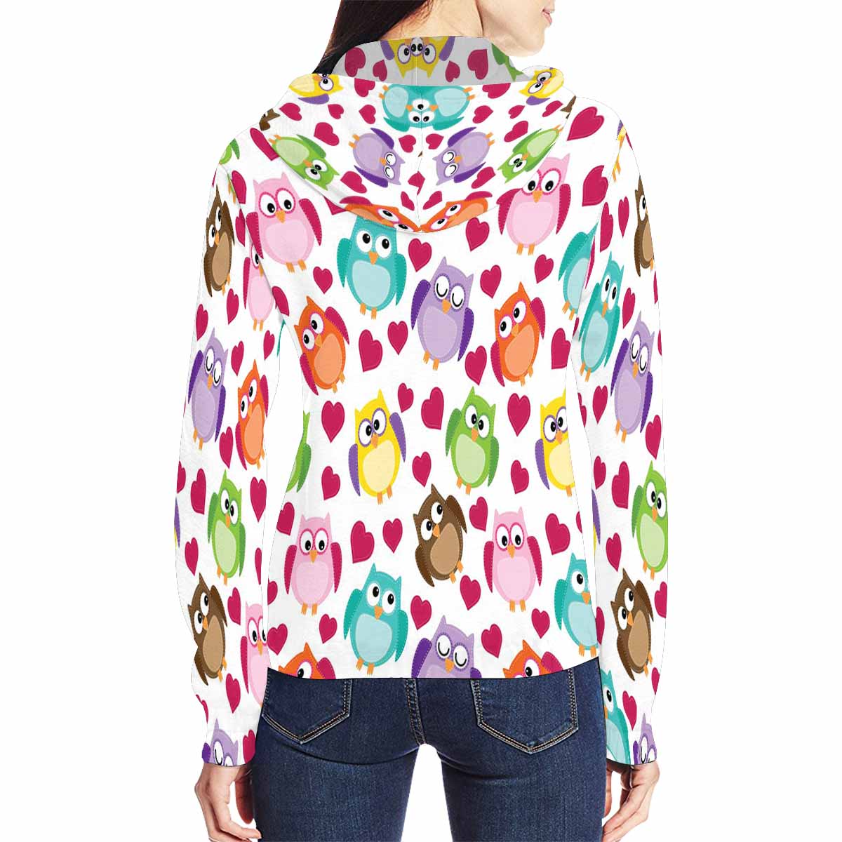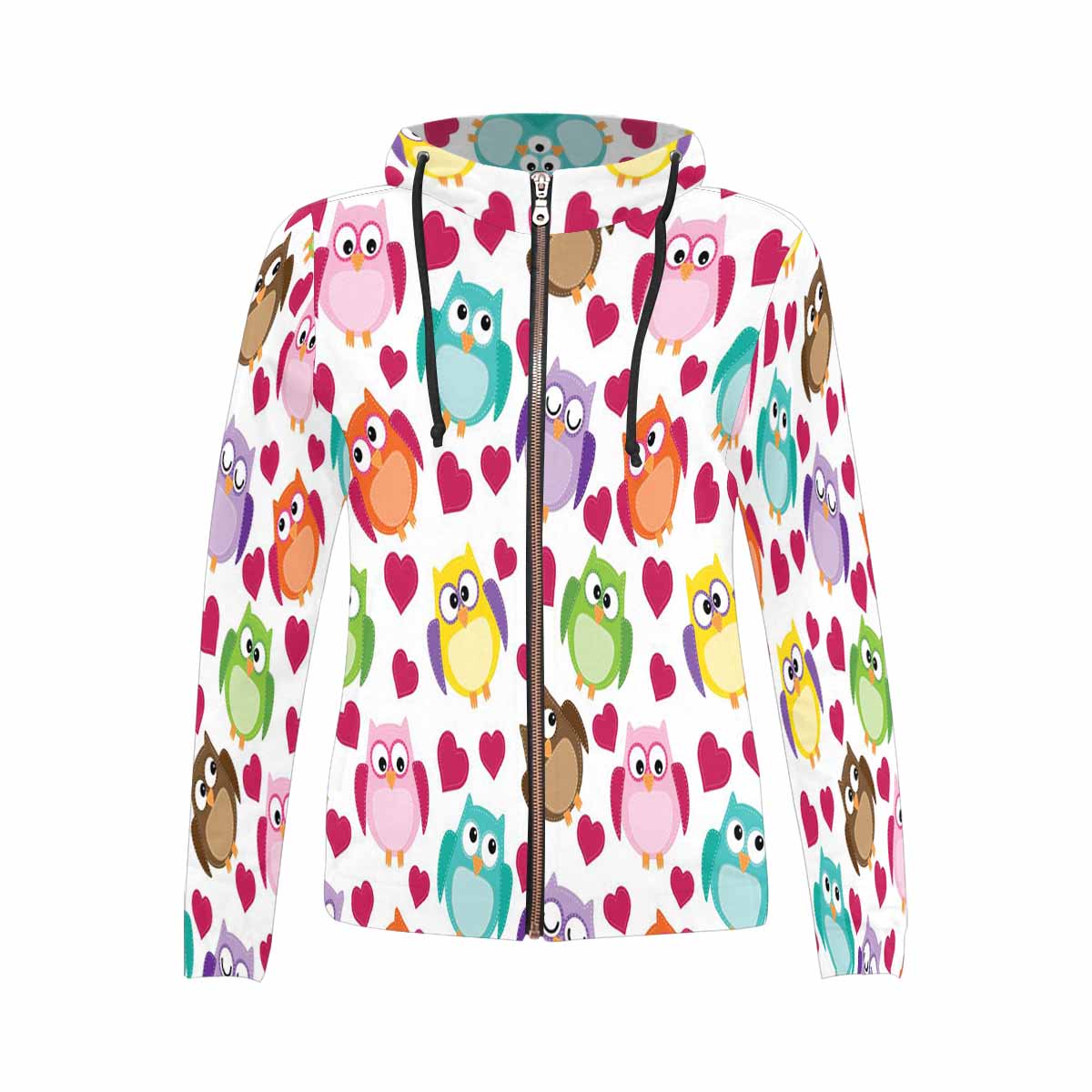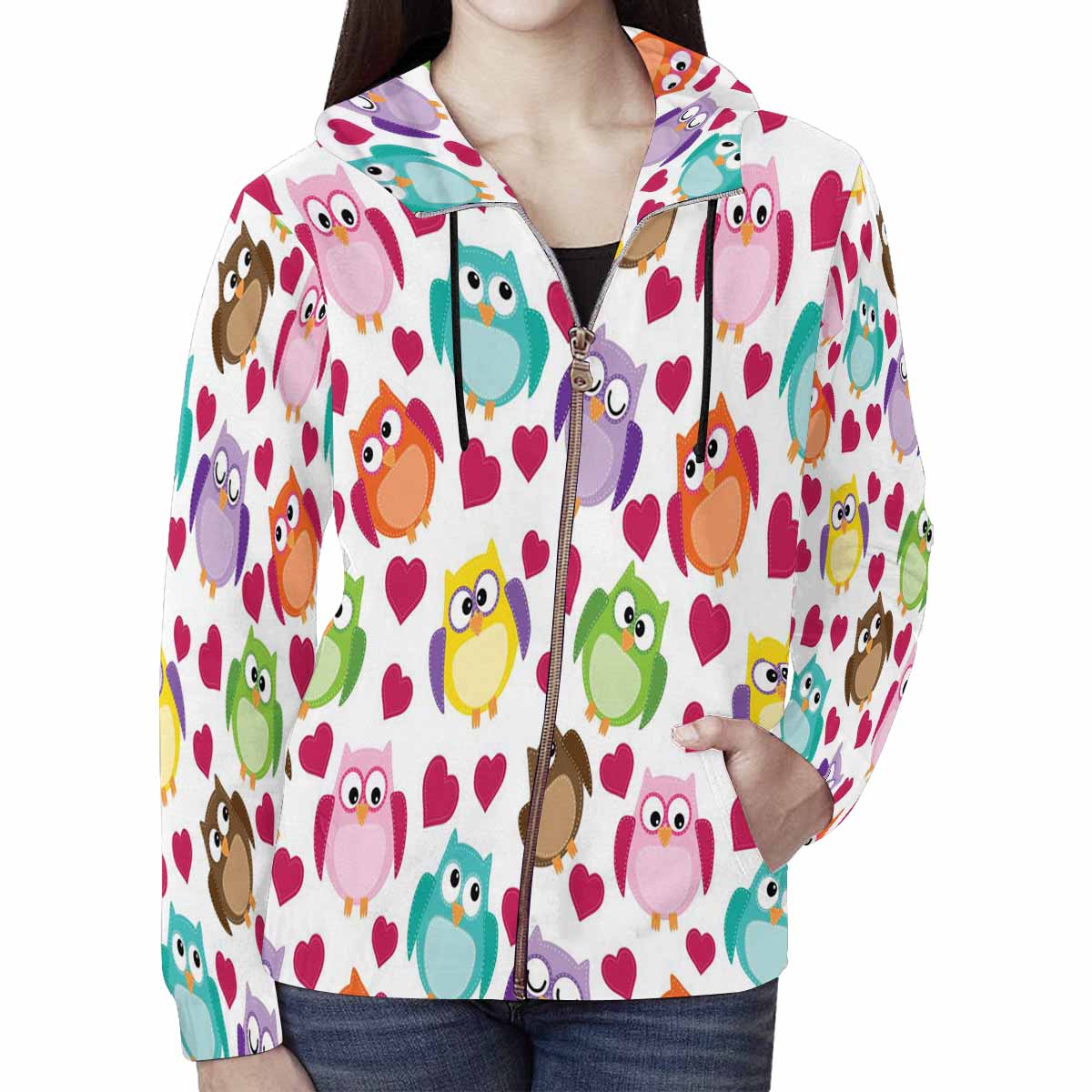 Women's Full Zip Hoodies print with cute owl pattern with hearts