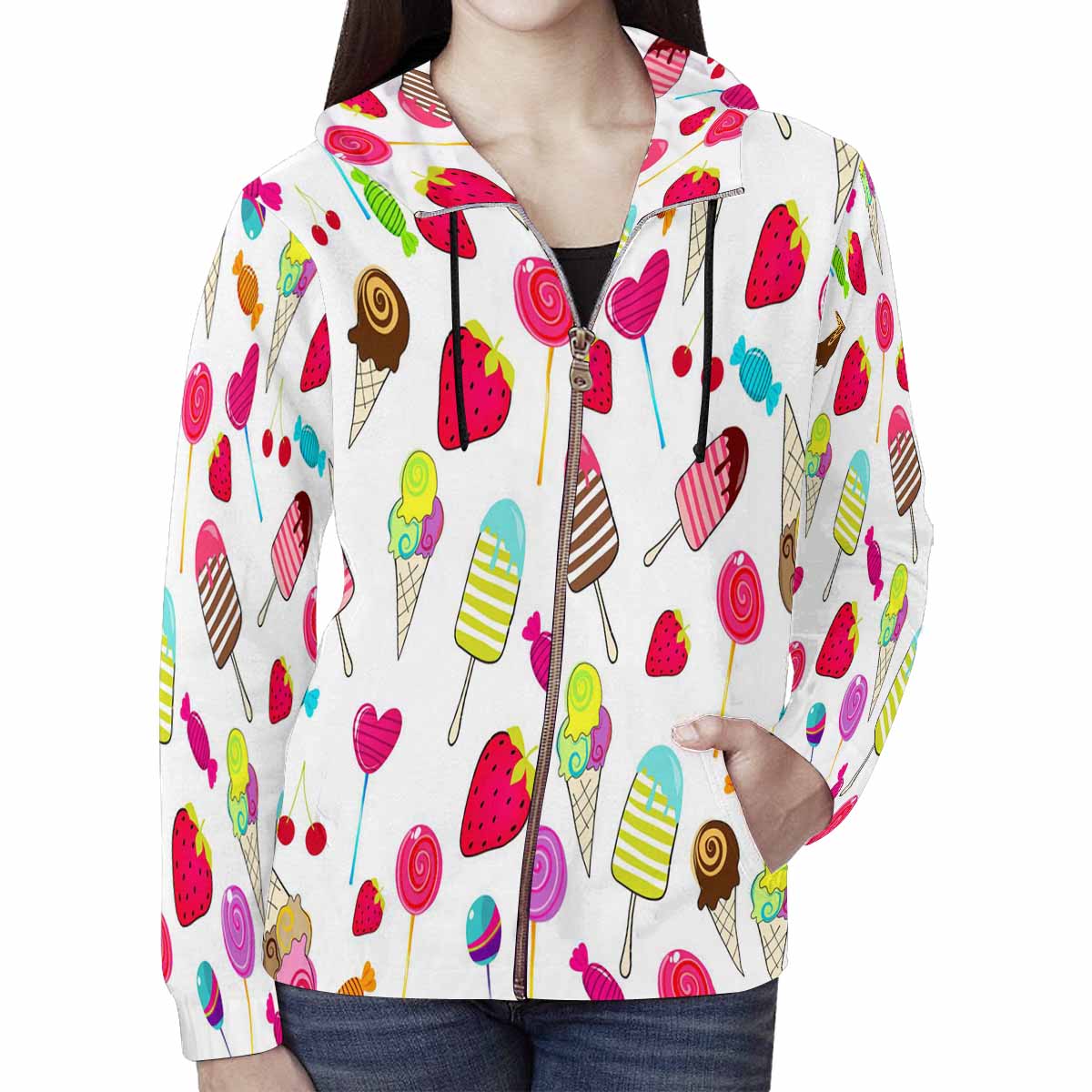 Women's Full Zip Hoodies print with cute retro candies