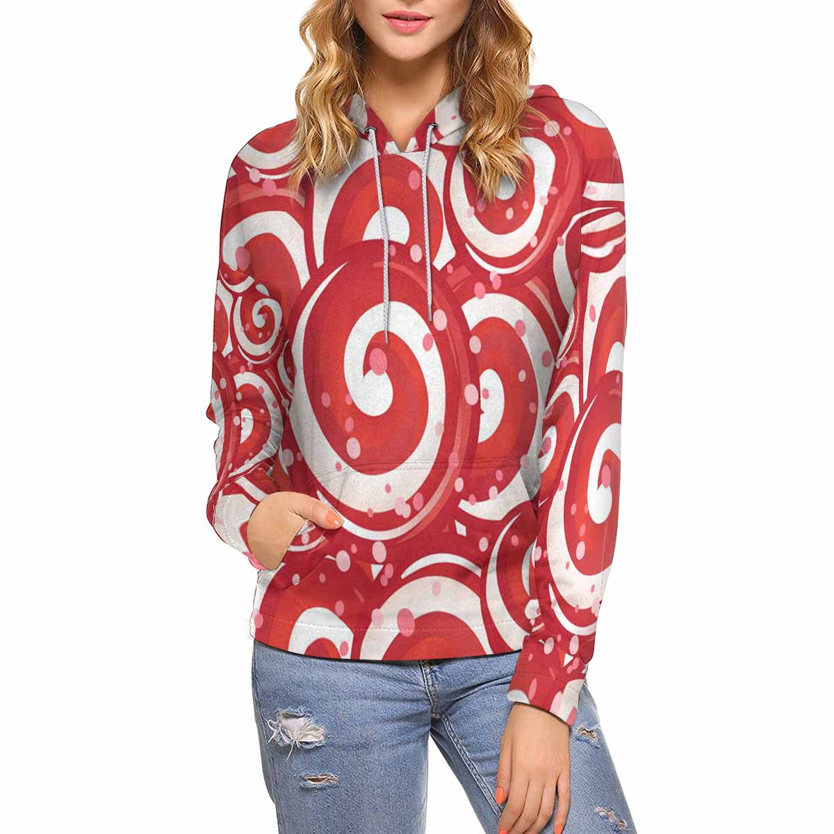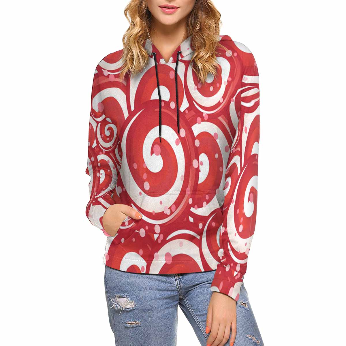 Women's All over print Hoodie with Red Candy lollipops