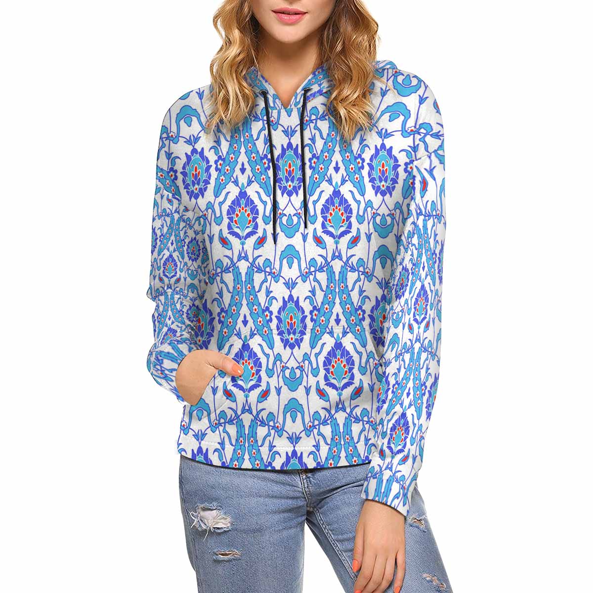 Dye-sublimation printing, Personalized all-over print hoodie for women.