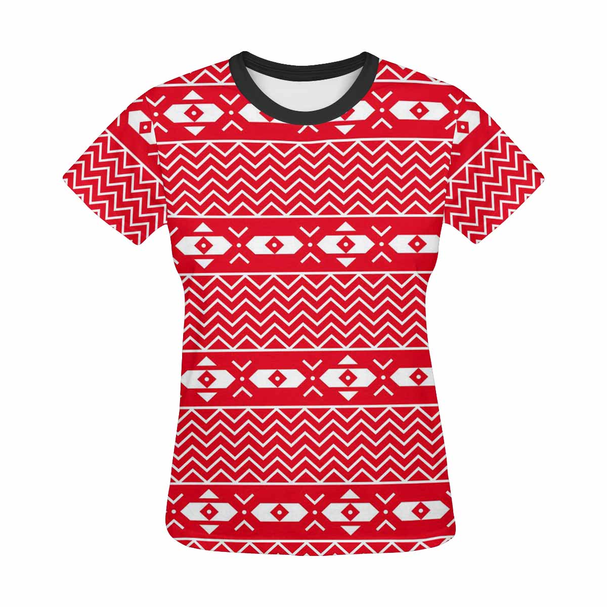 Womens graphic T-Shirts print with red Scandinavian pattern