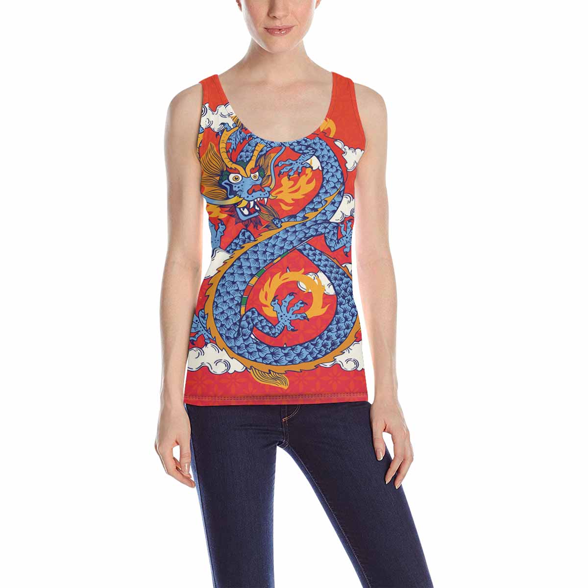 Women's Tank Top print with colorful Chinese Dragon