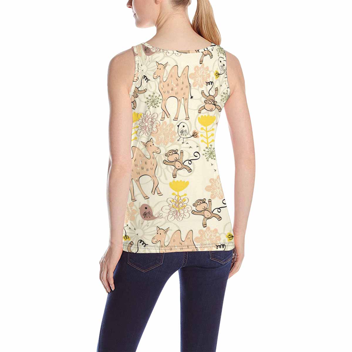 Women's Tank Top print with cute camel monkey pattern
