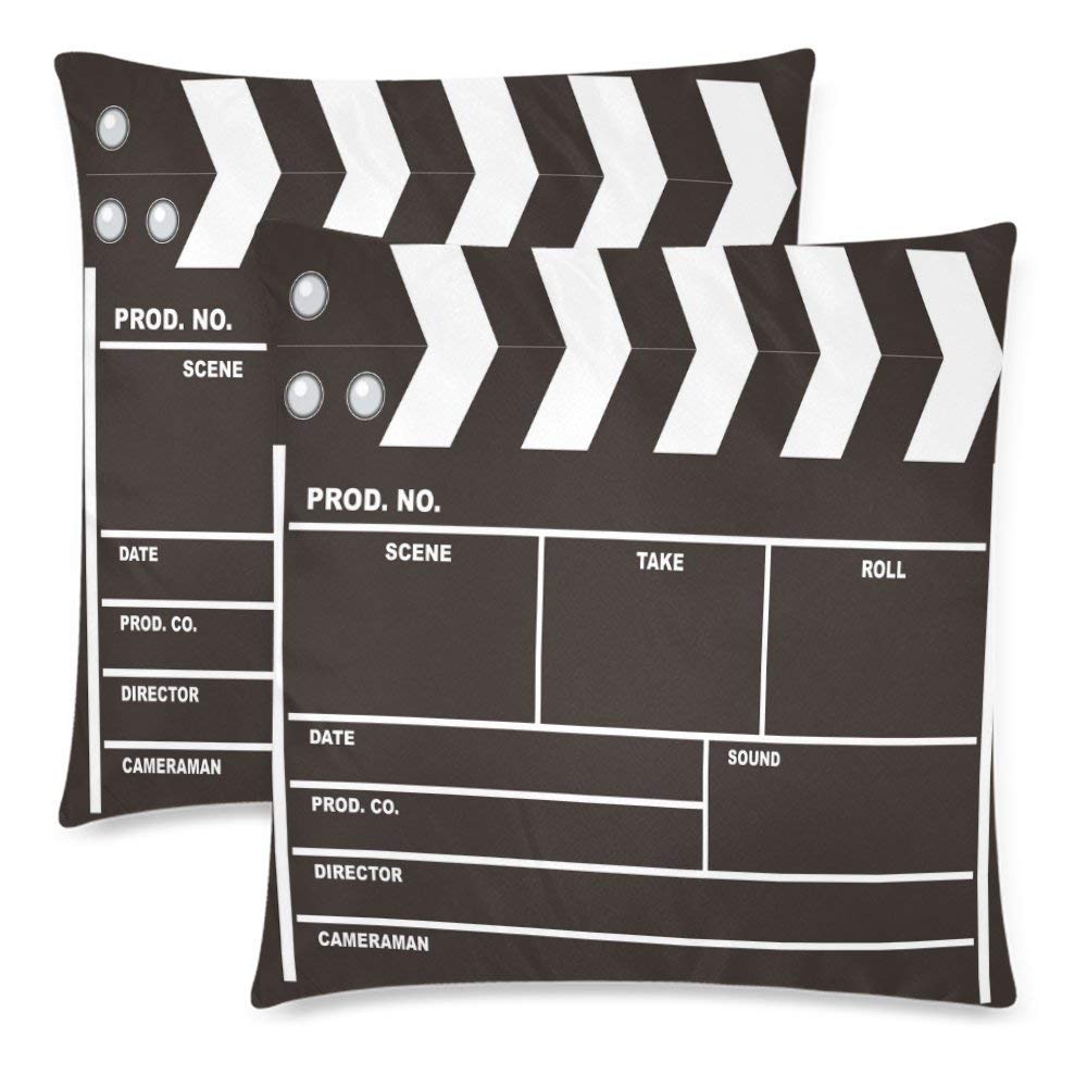 2 Pack Movie Clapboard Throw Cushion Pillow Case Cover 18x18 Twin Sides