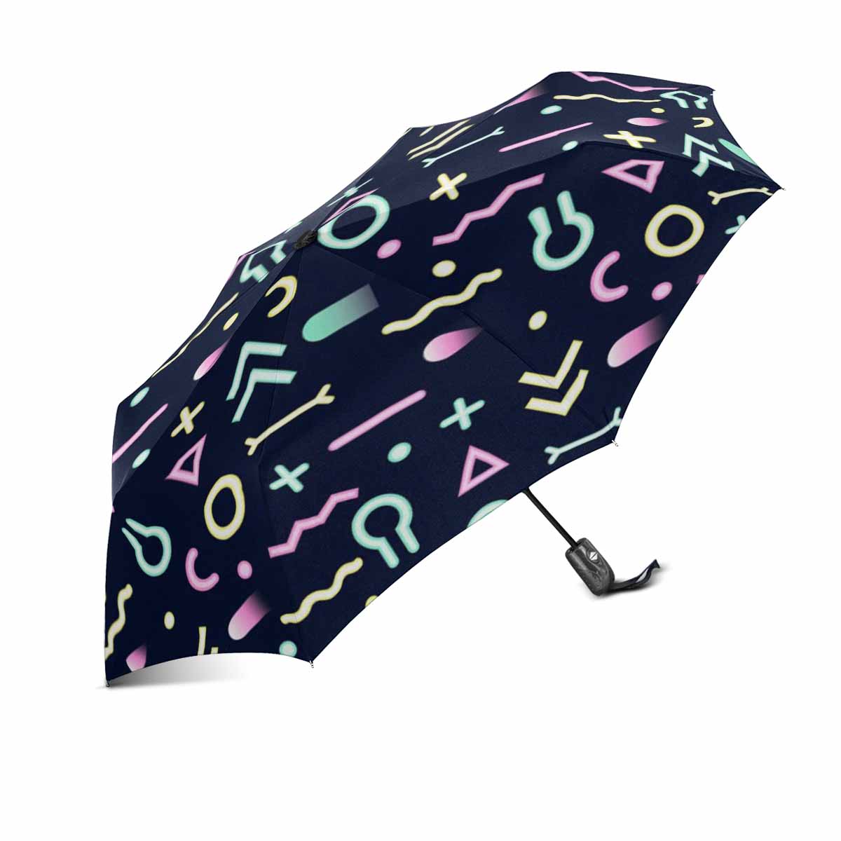 Abstract Memphis Neon pattern automatic umbrella foldable with totes
