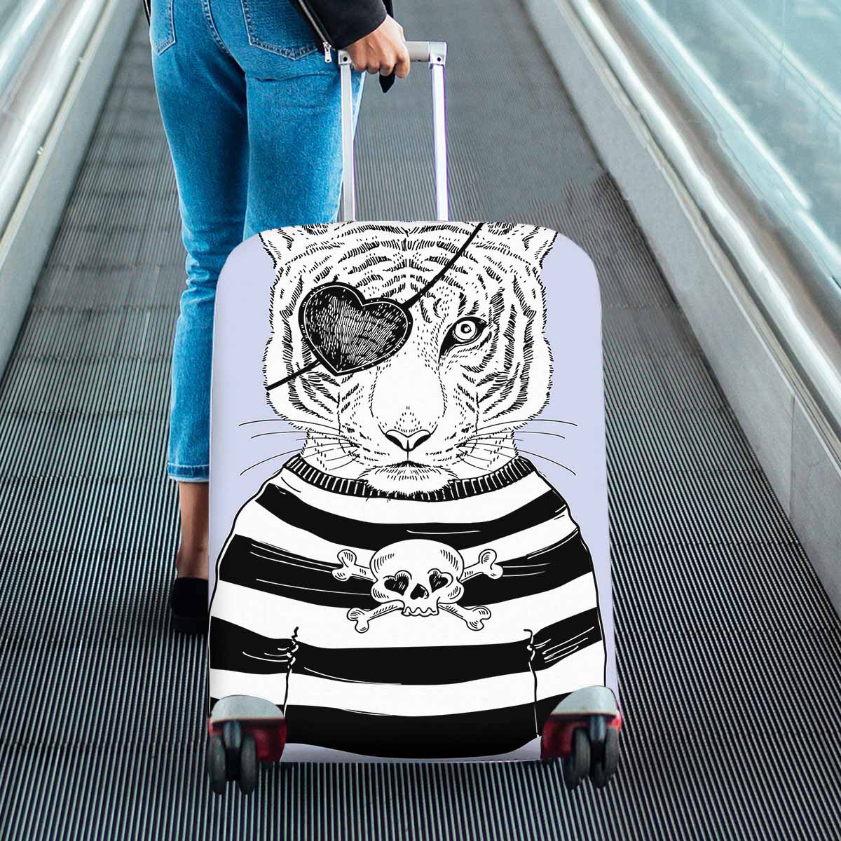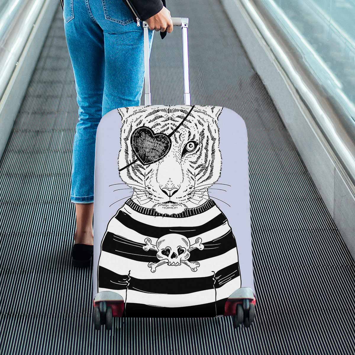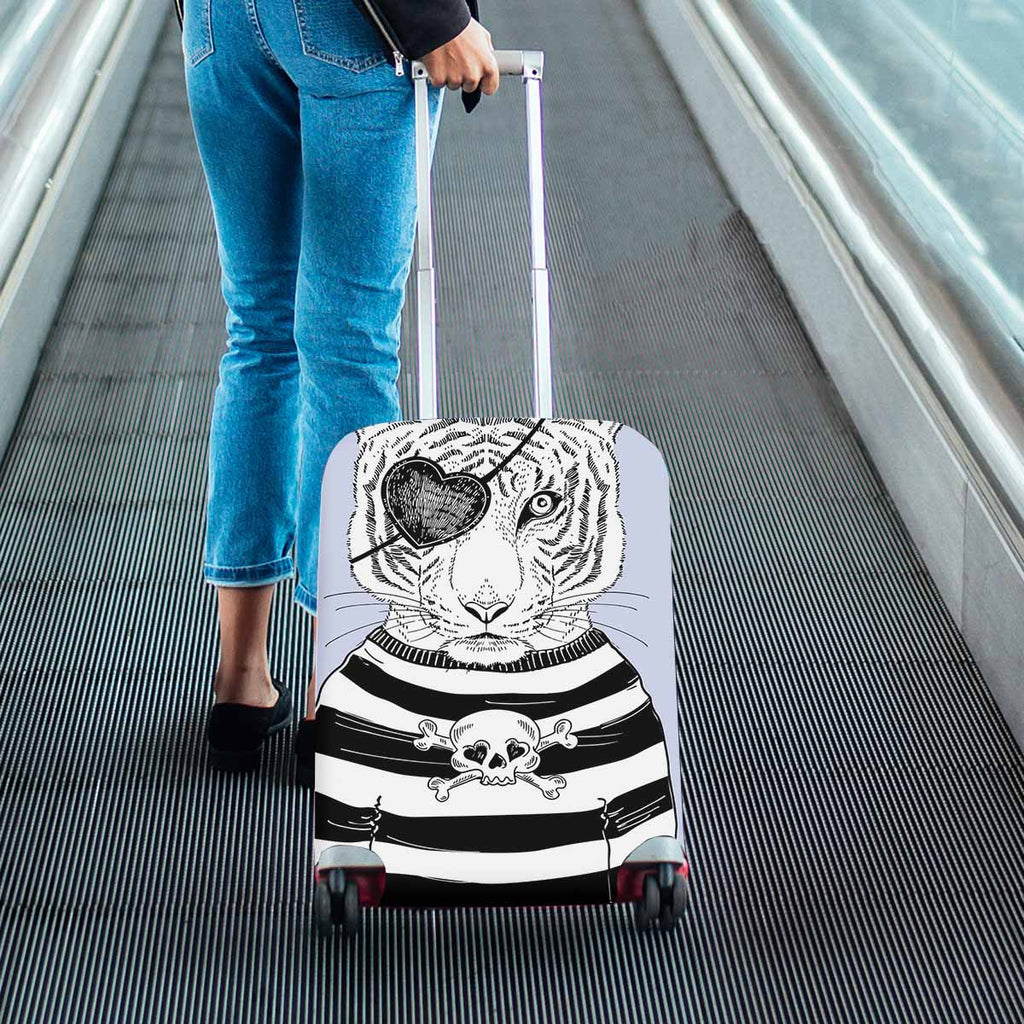 Animals themed Cover for Luggage suitcase printed Hand drawn illustration of tiger pirate
