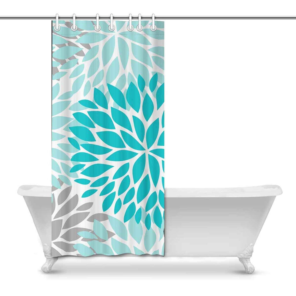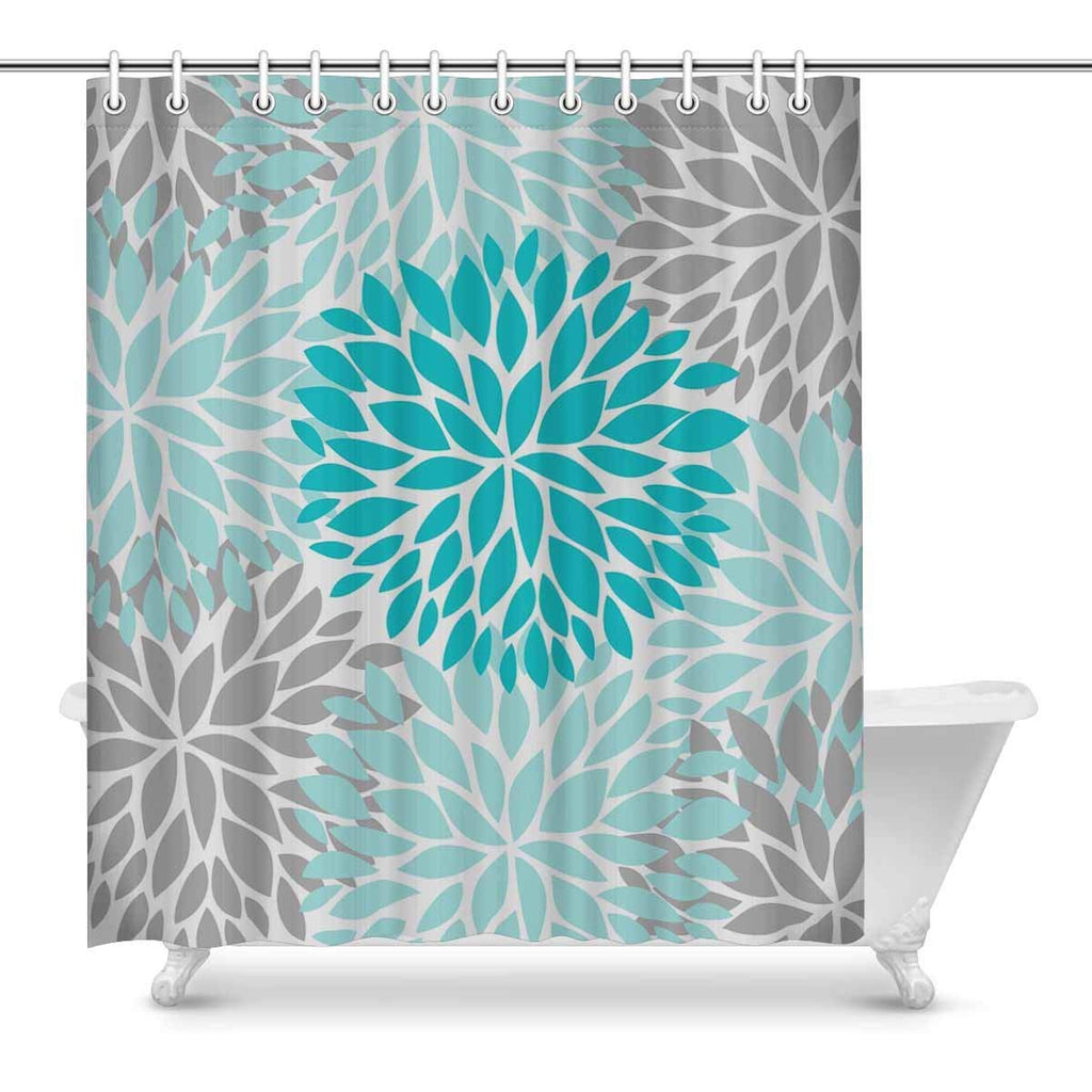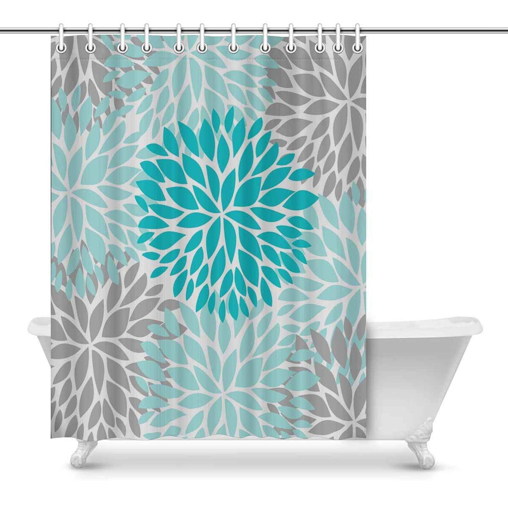 Dahlia Pinnata Flower Turquoise Blue and Gray Modern Art Fabric Shower Curtain