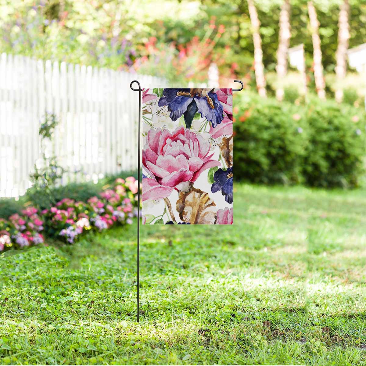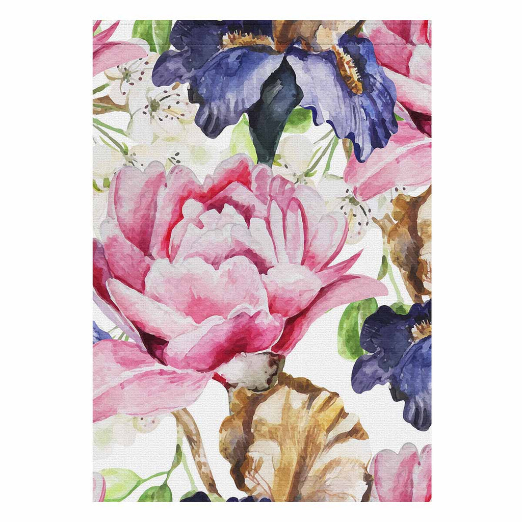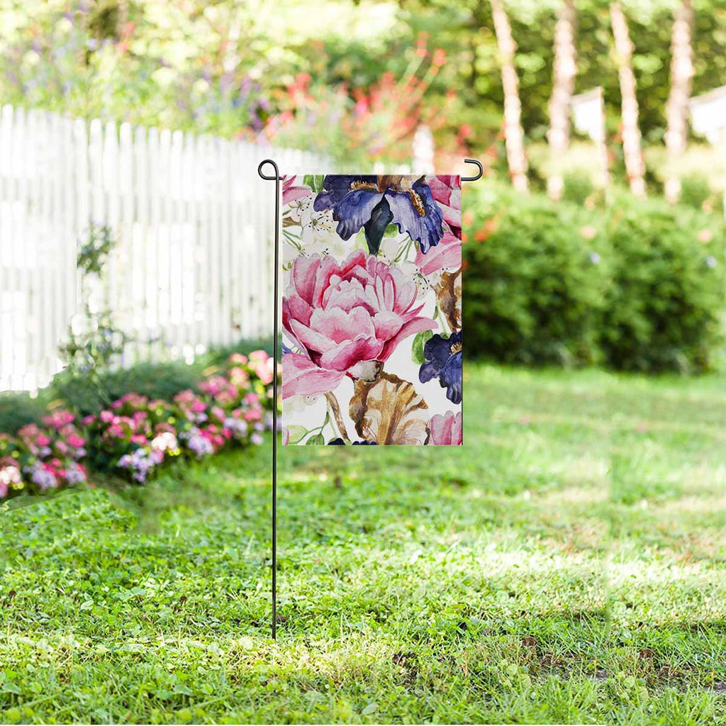 Garden Flags printed floral themed with watercolor flowers Iris Peonies