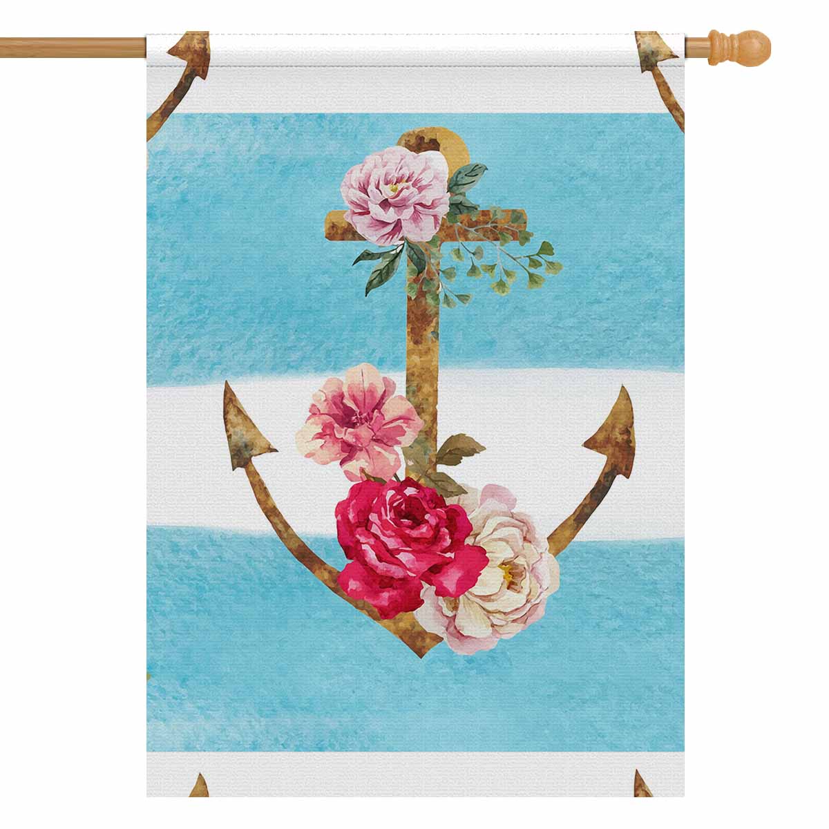 Garden Flags printed Nautical Mermaid themed with vector pattern with nice watercolor anchor