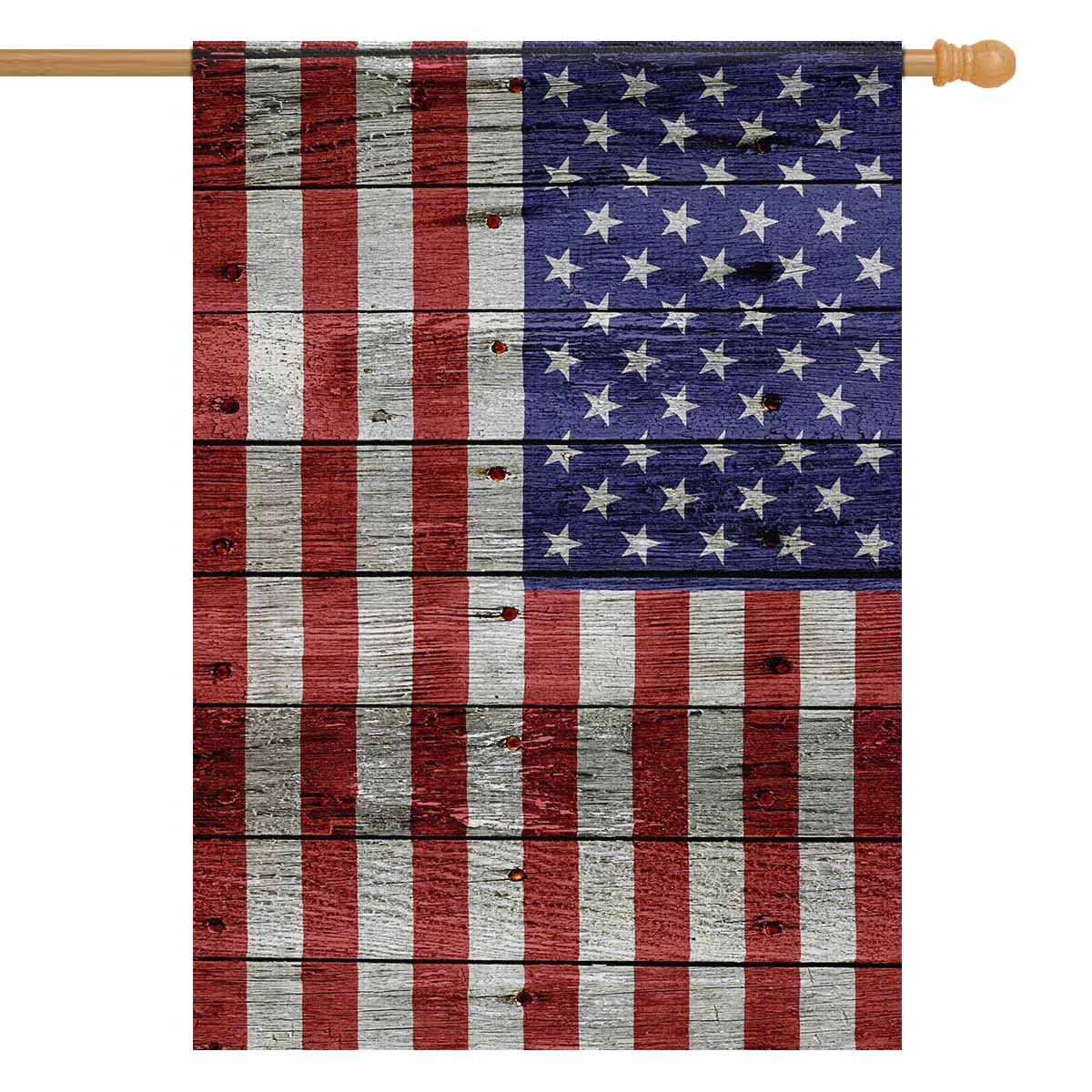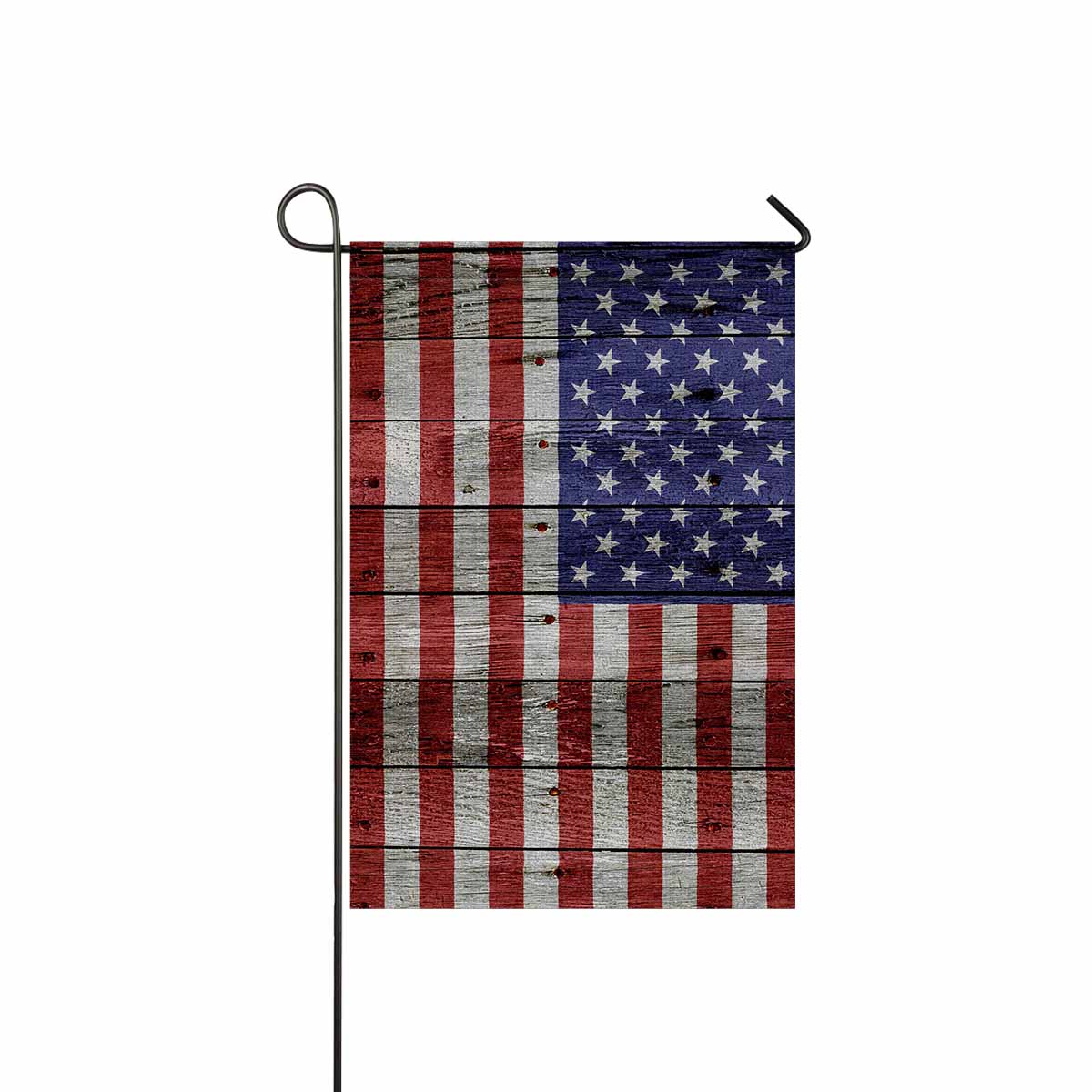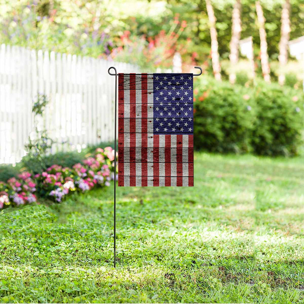 Garden Flags printed rustic themed with USA flag on wood backgroud