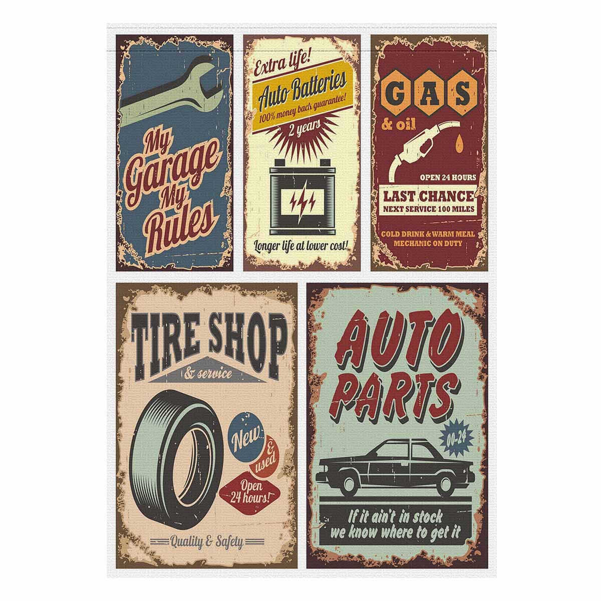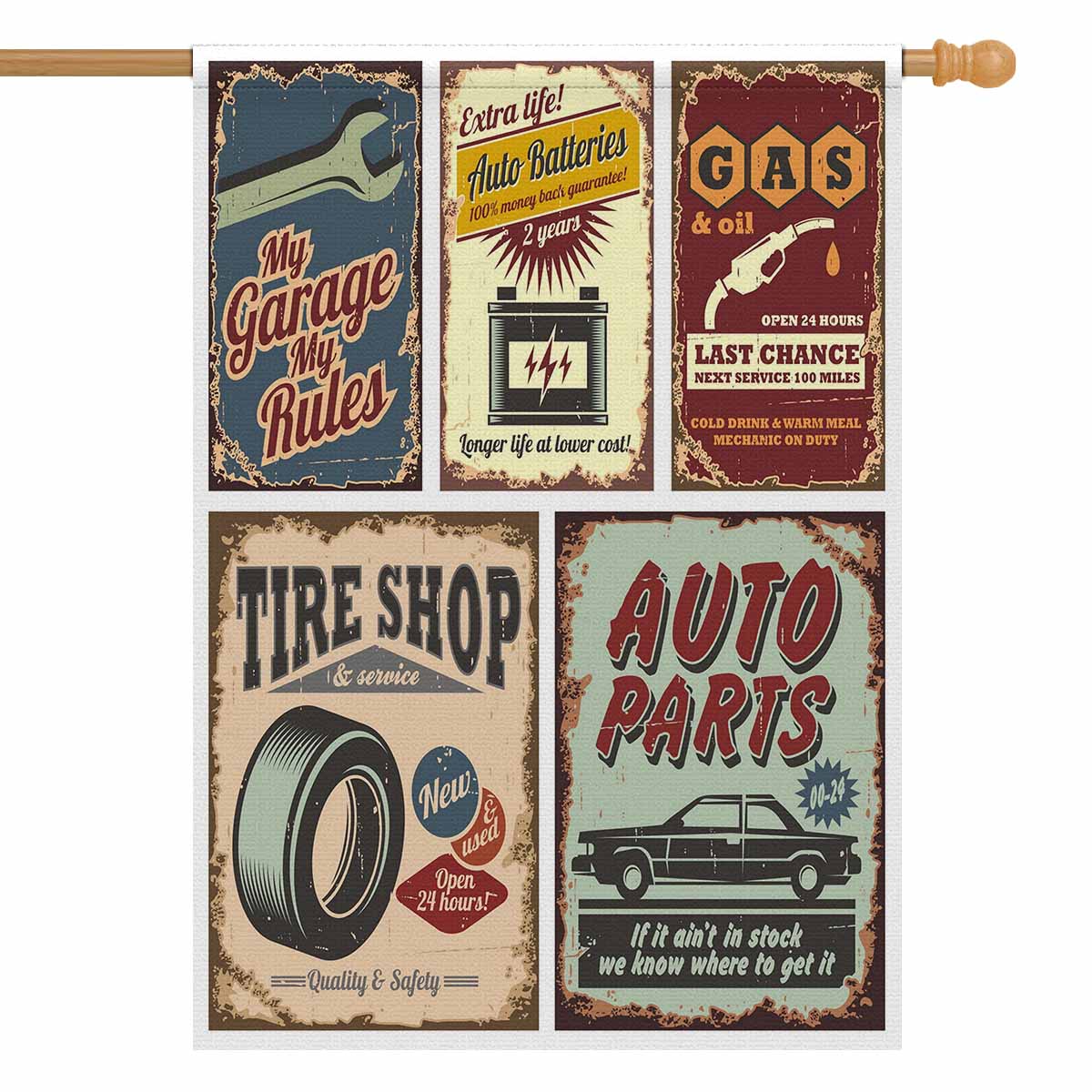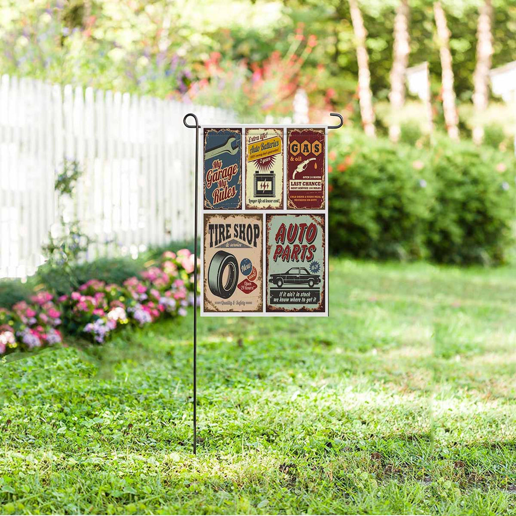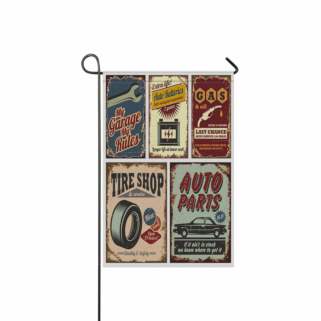 Garden Flags printed rustic themed with Vintage car metal signs and posters