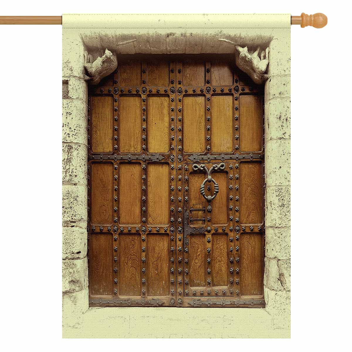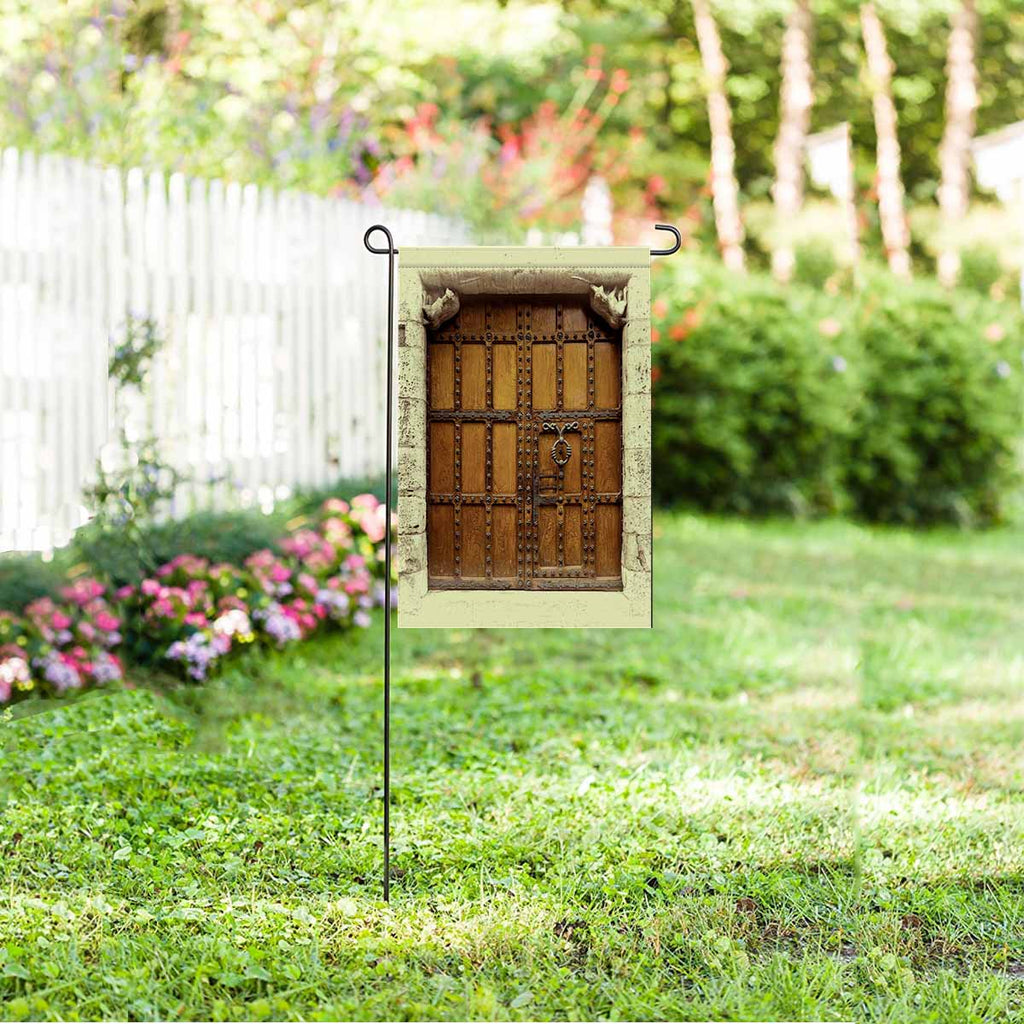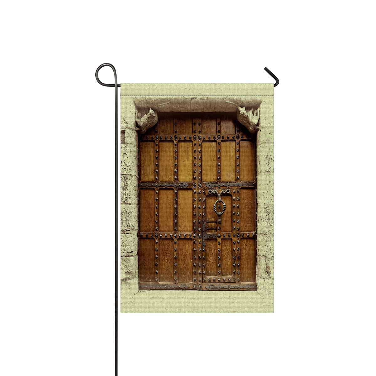 Garden Flags printed rustic themed with Vintage Style Old Wooden Door