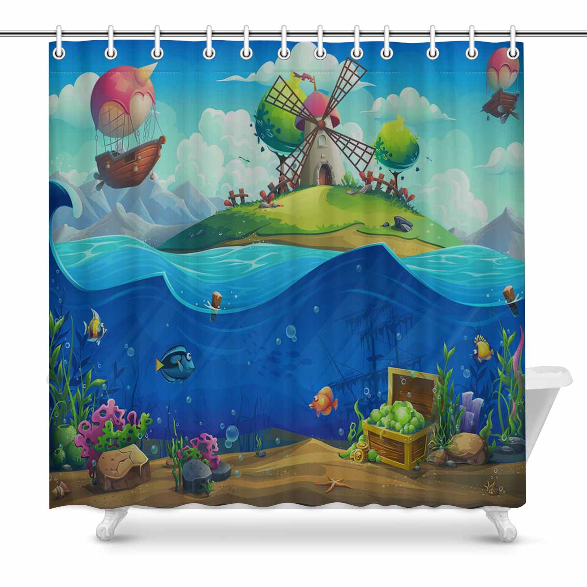 Seaworld themed print on shower curtains for bathroom, create a brilliant atmosphere in your bathroom, include a selection of different stylish and custom-made designs for your bath decoration.