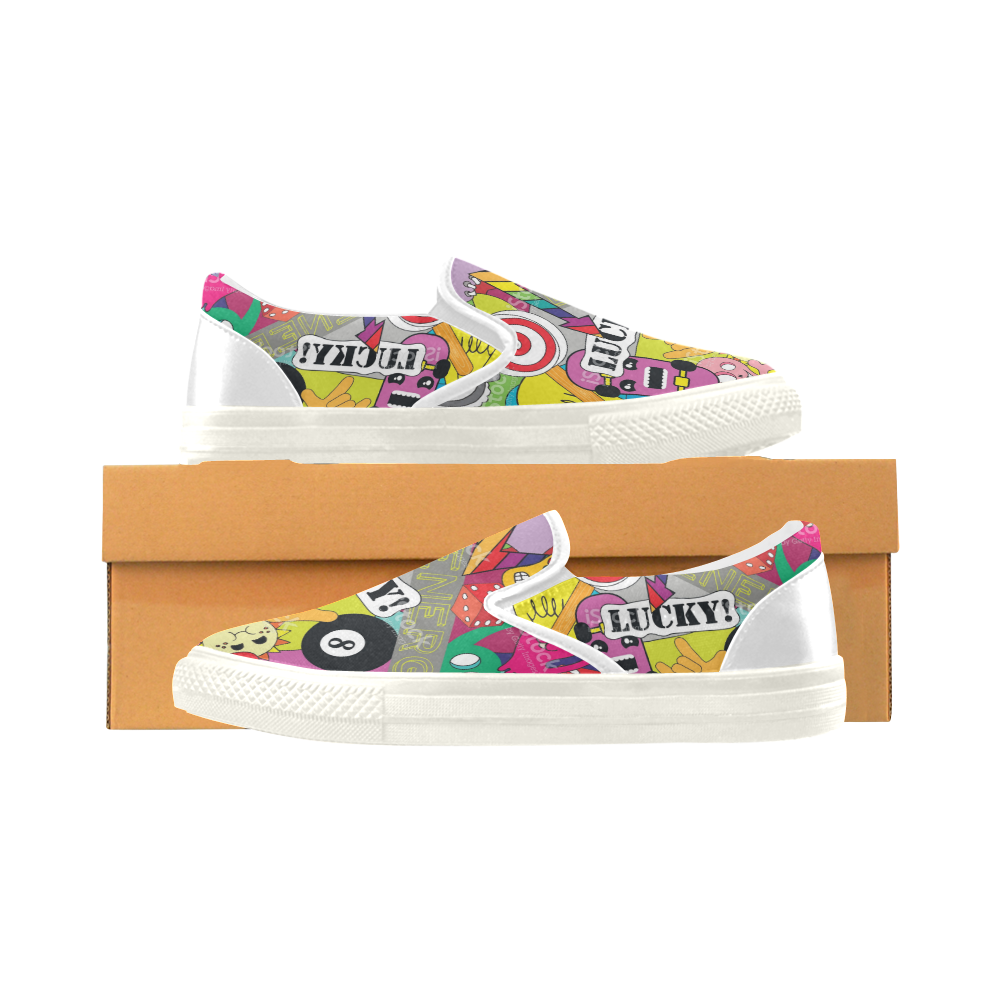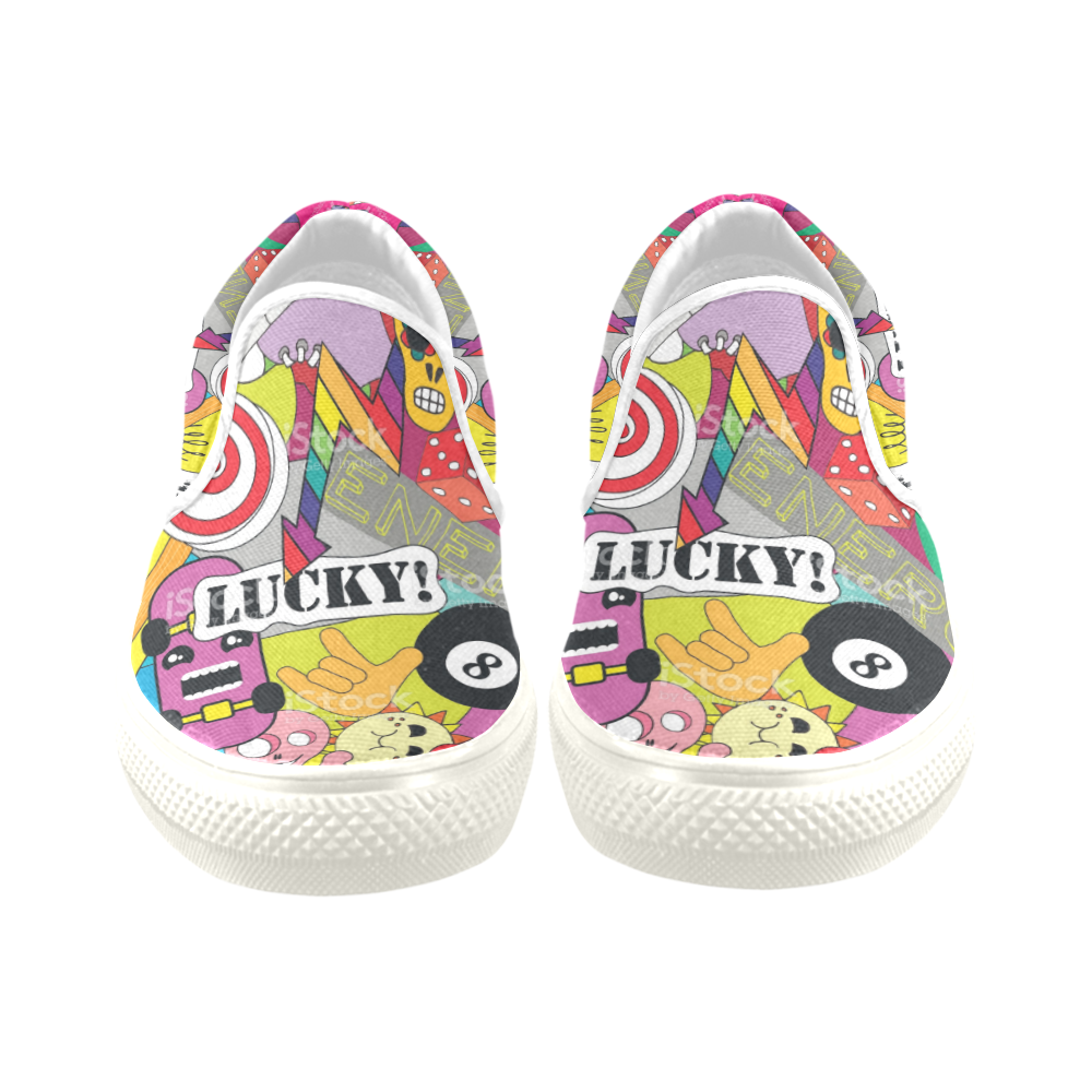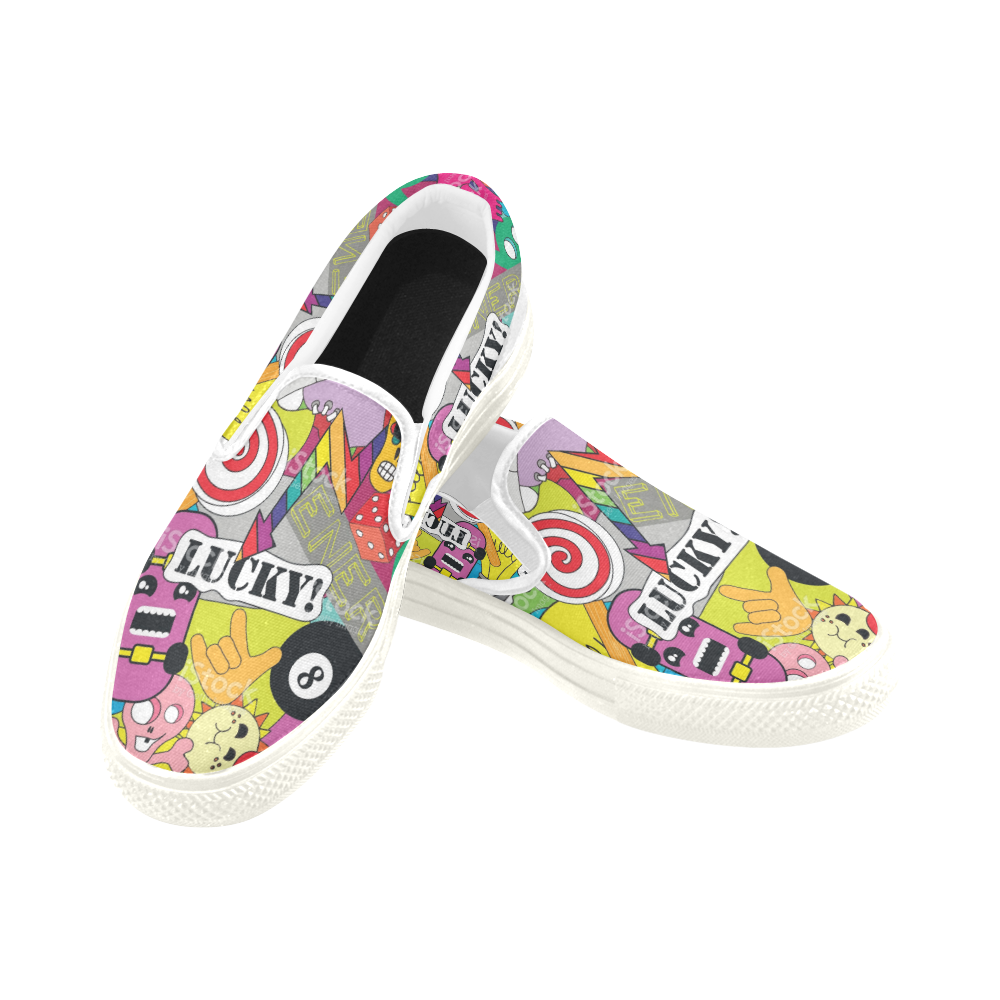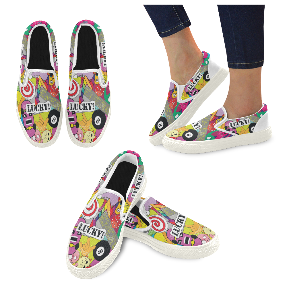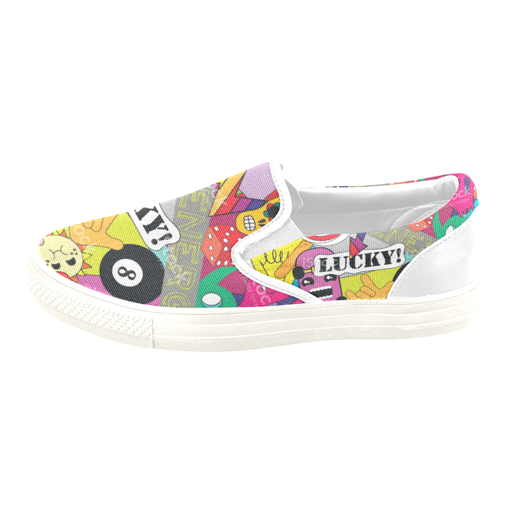 Women's print Lucky 8 Slip-on Canvas Women's sports Shoes White