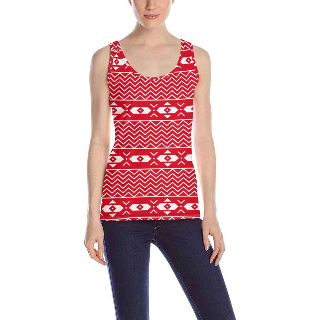 Women's Tank Top print with red Scandinavian snowflake pattern