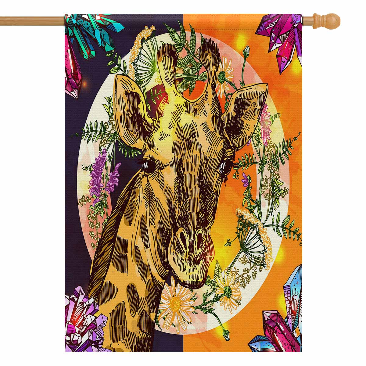 Garden Flags printed animals themed with boho style illustration portrait of giraffe