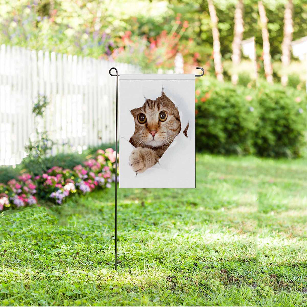 Garden Flags printed animals themed with Cat looking up in paper side torn hole isolated