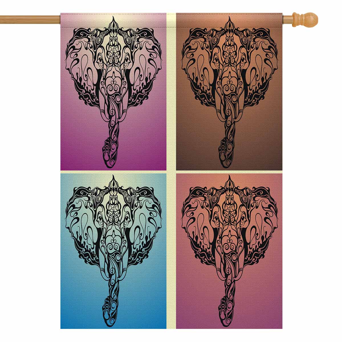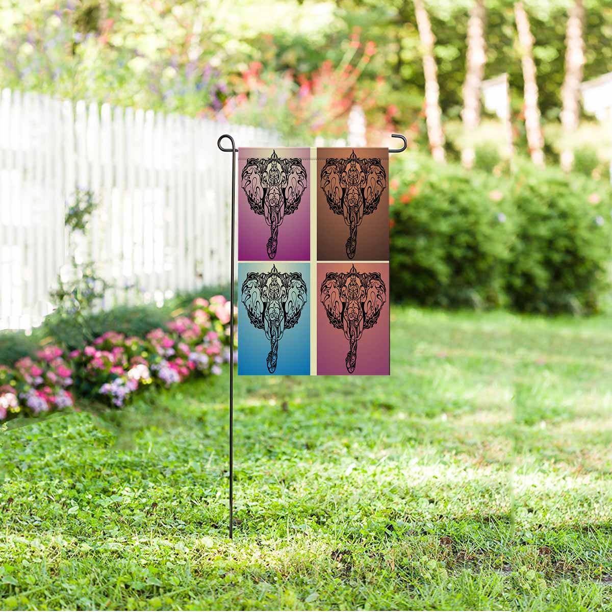 Garden Flags printed animals themed with Ethnic patterned head Set of elephant