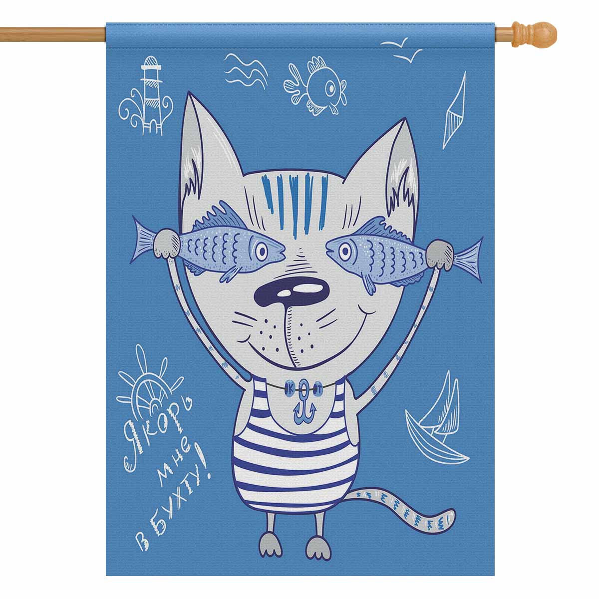 Garden Flags printed animals themed with funny baby doodle design character with fishes and sea symbols