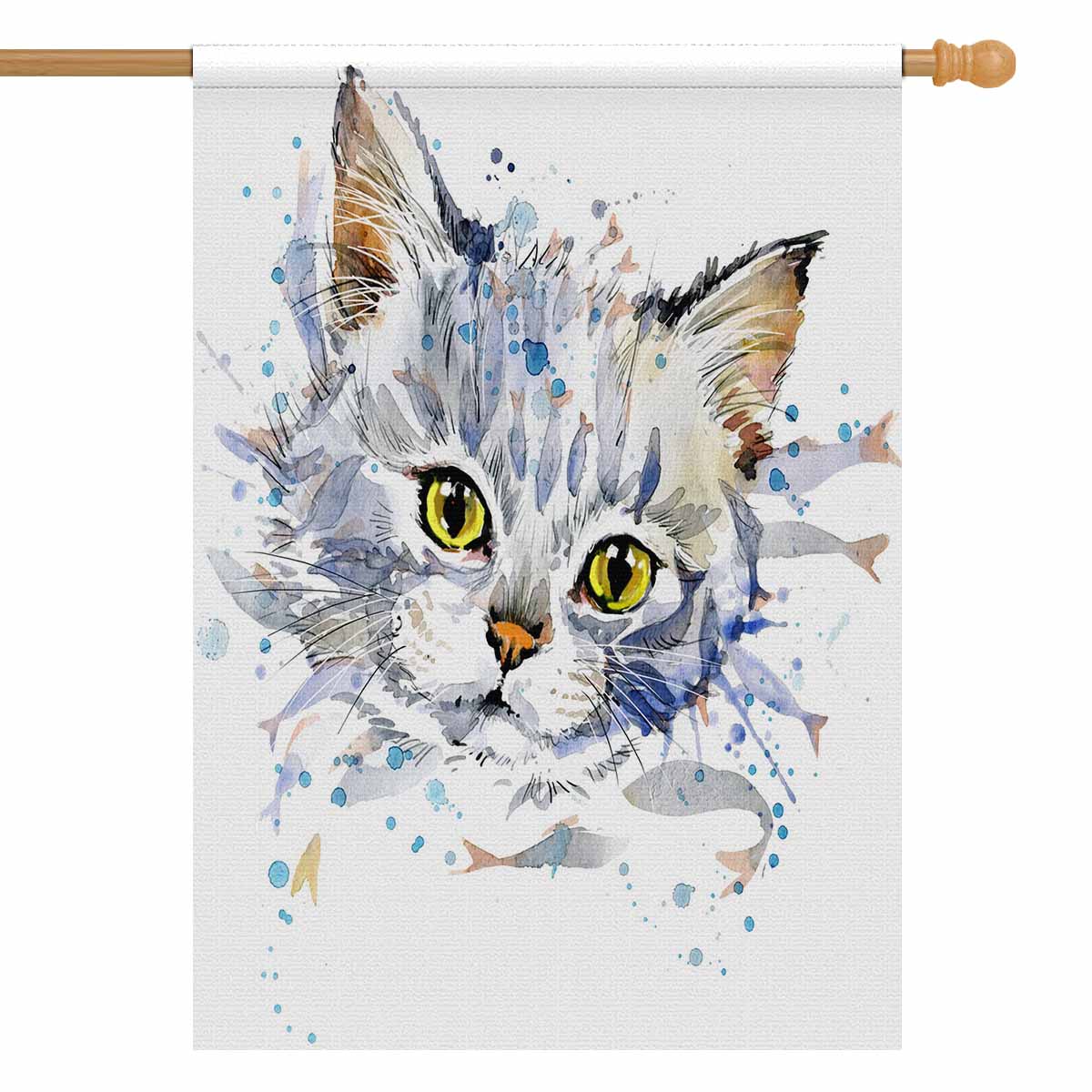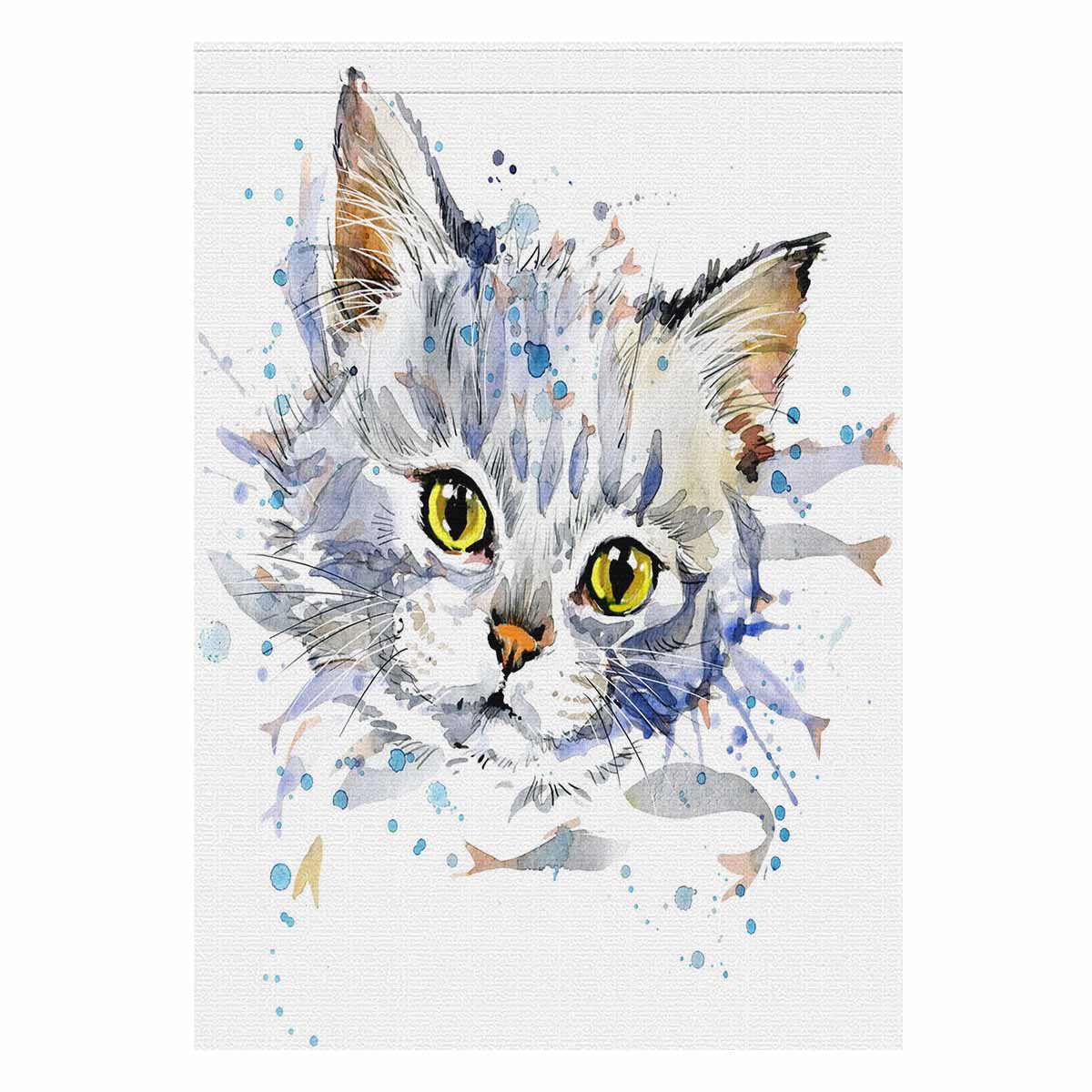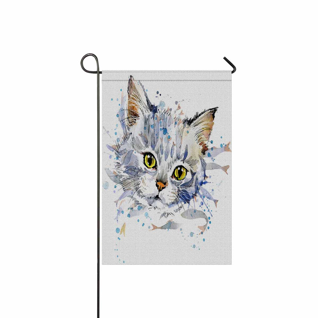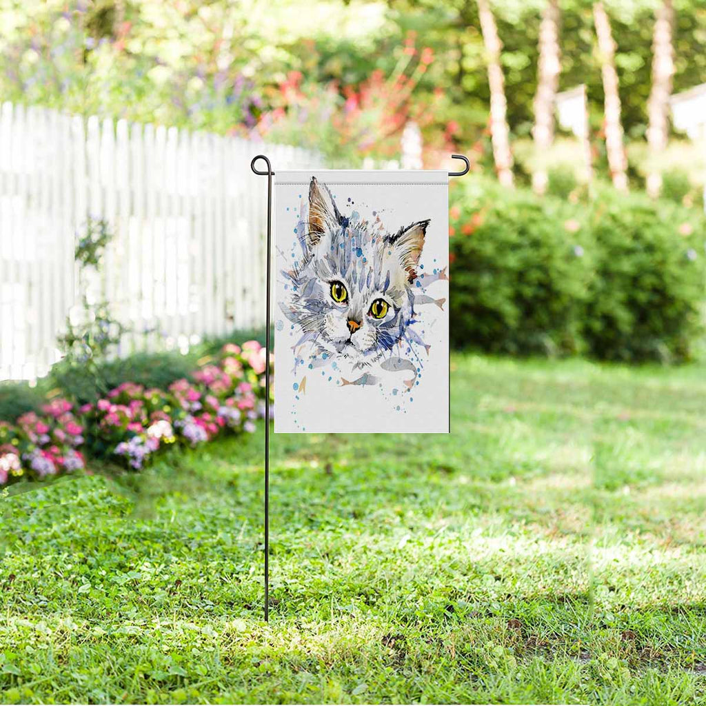 Garden Flags printed animals themed with Funny kitten illustration with splash watercolor