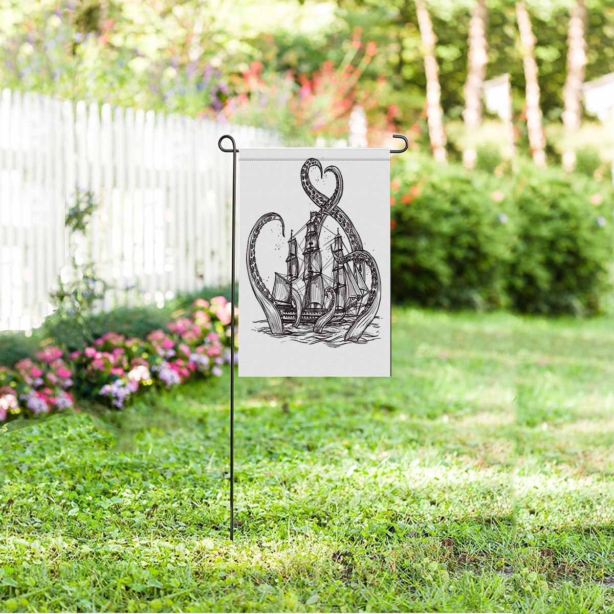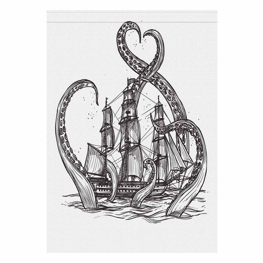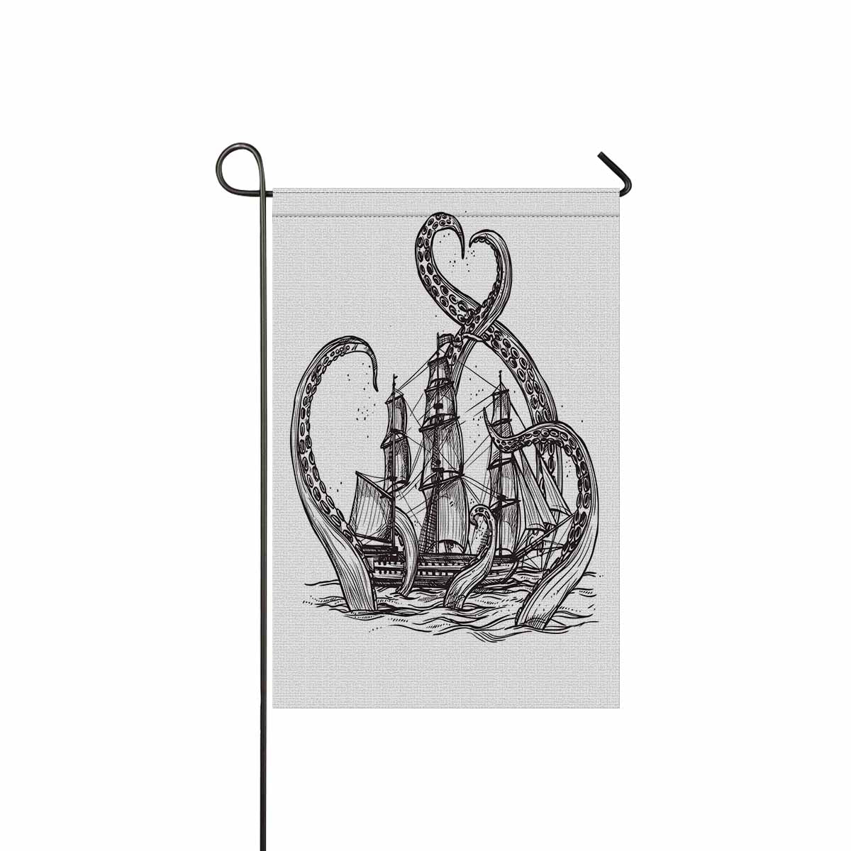 Garden Flags printed animals themed with Giant octopus catches old style sail ship vector illustration