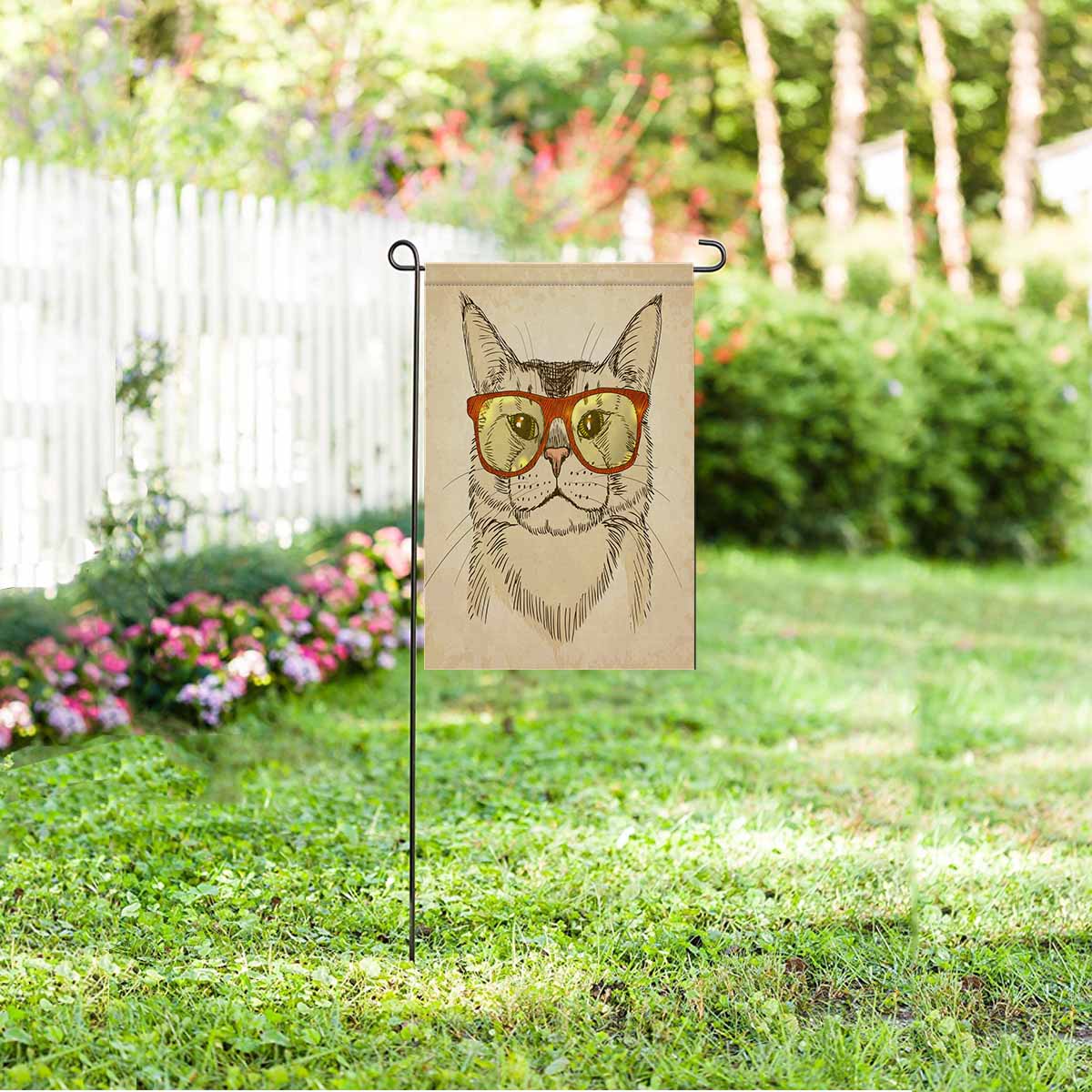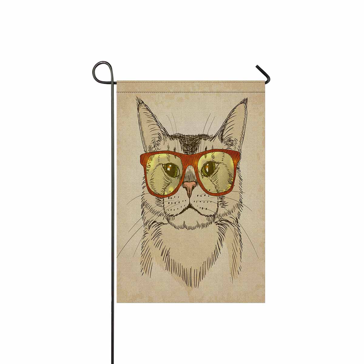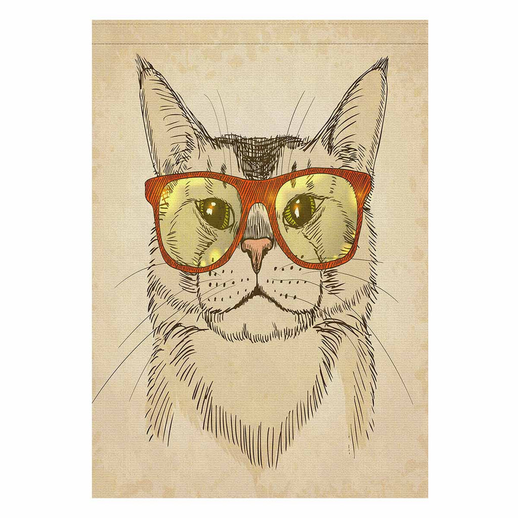 Garden Flags printed animals themed with Hipster Cat with Eyeglasses