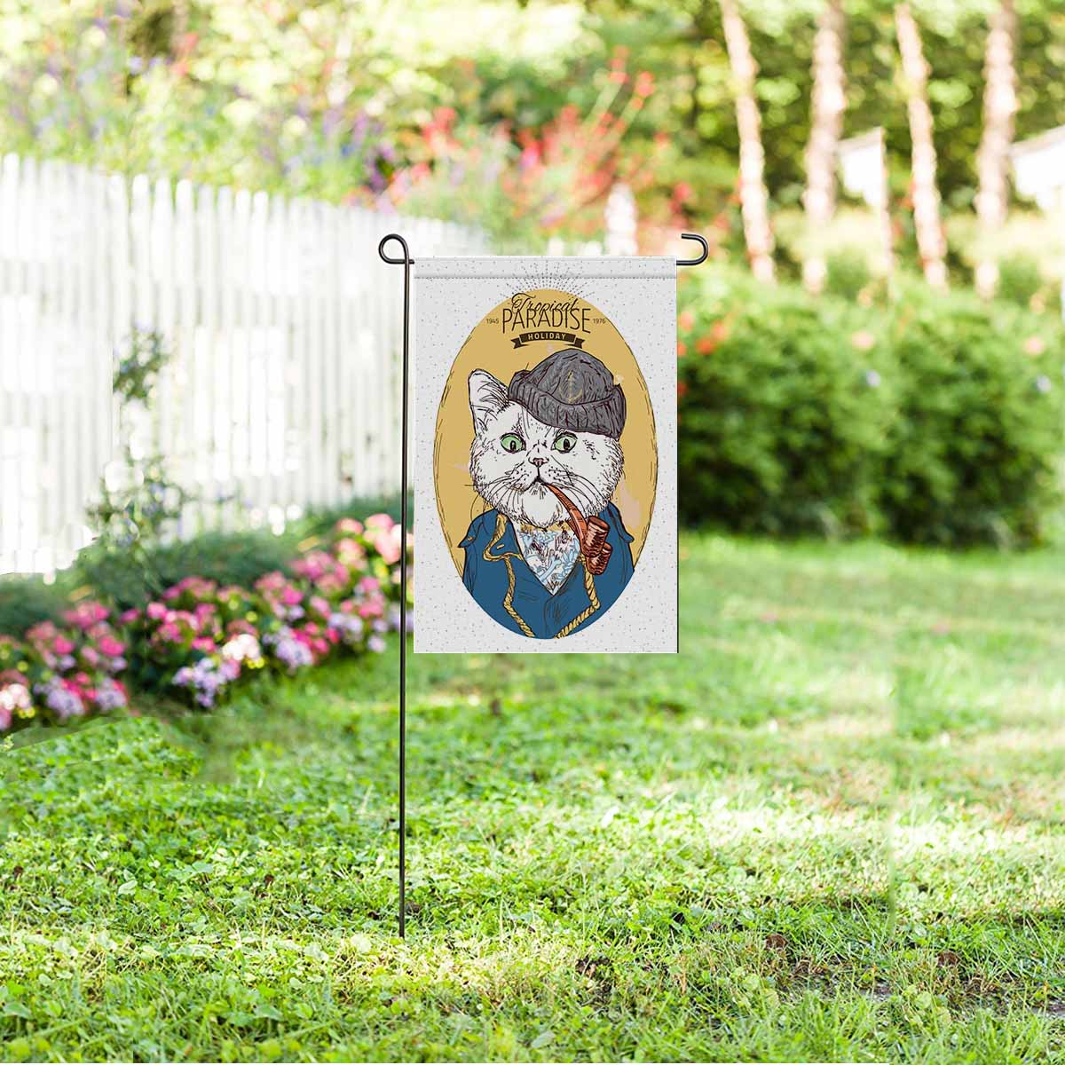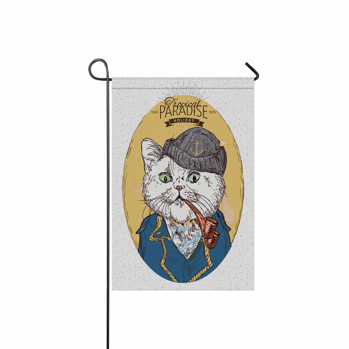 Garden Flags printed animals themed with pirate cat a on yellow background