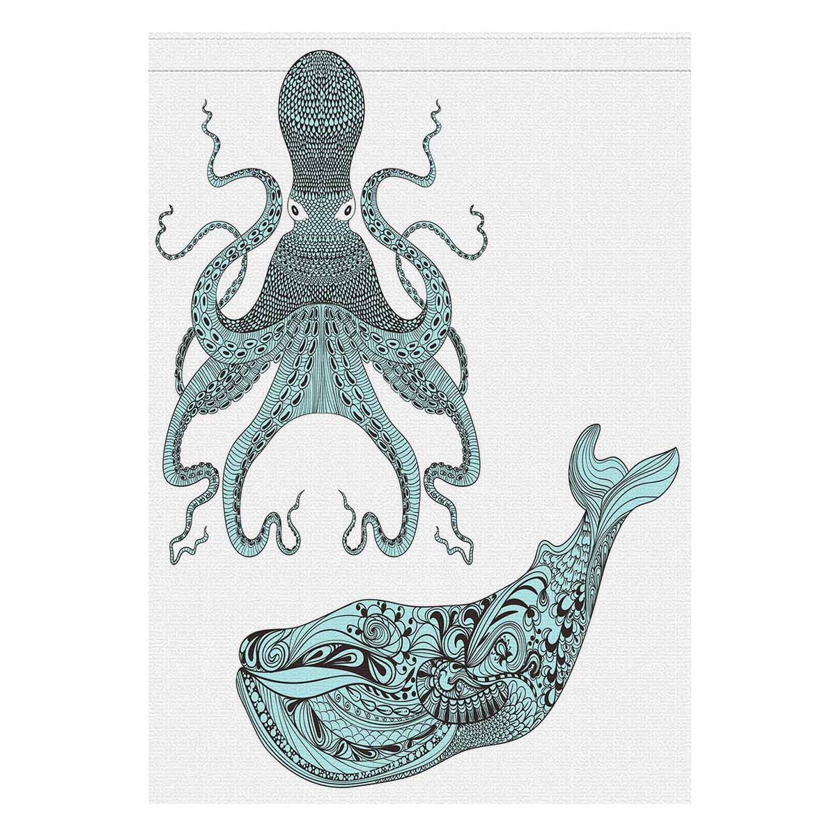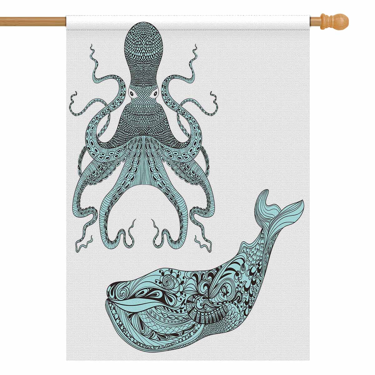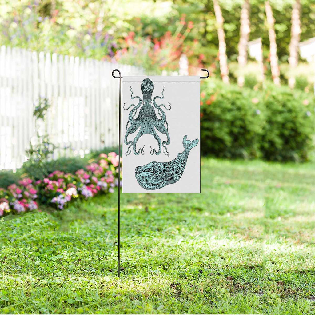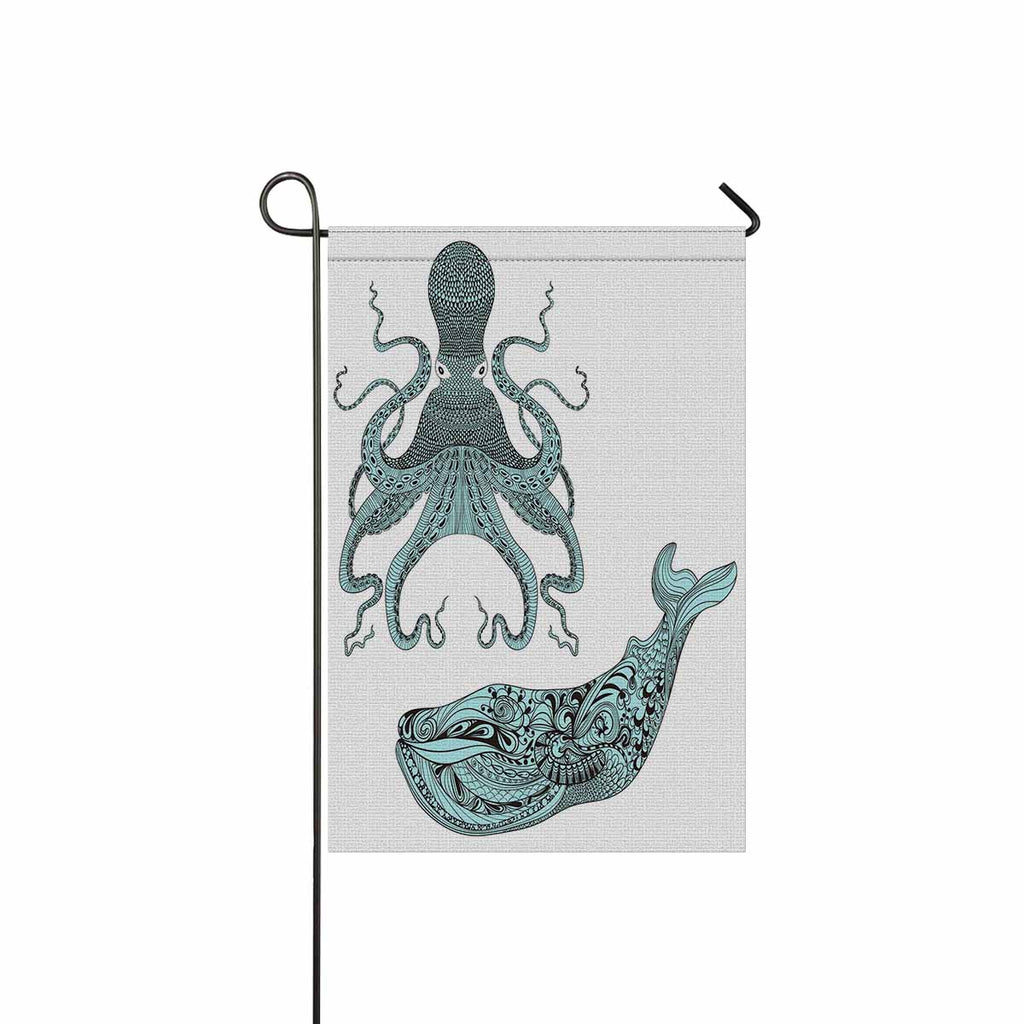 Garden Flags printed animals themed with Zentangle stylized Octopus and Whale
