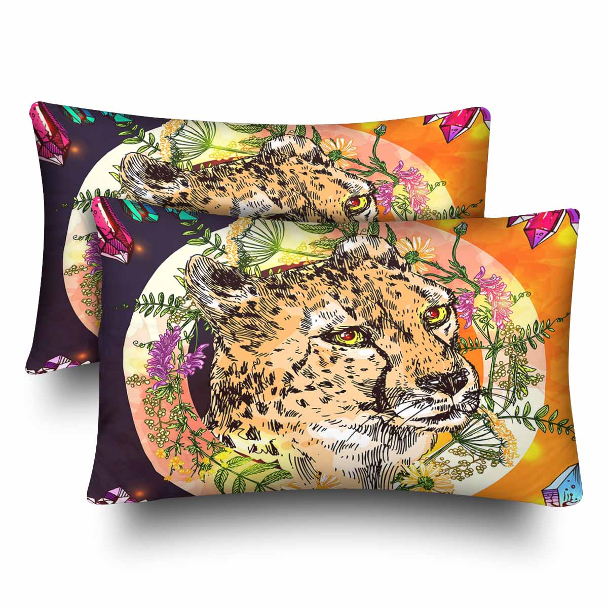 Animals themed Rectangle Pillow Cases printed boho style illustration portrait of cheetah