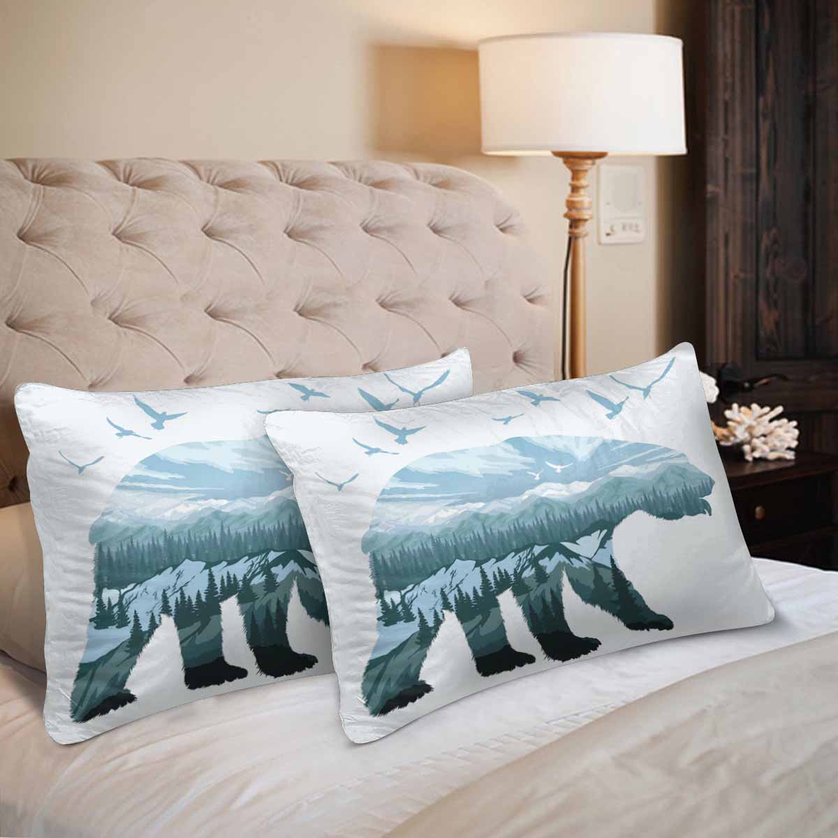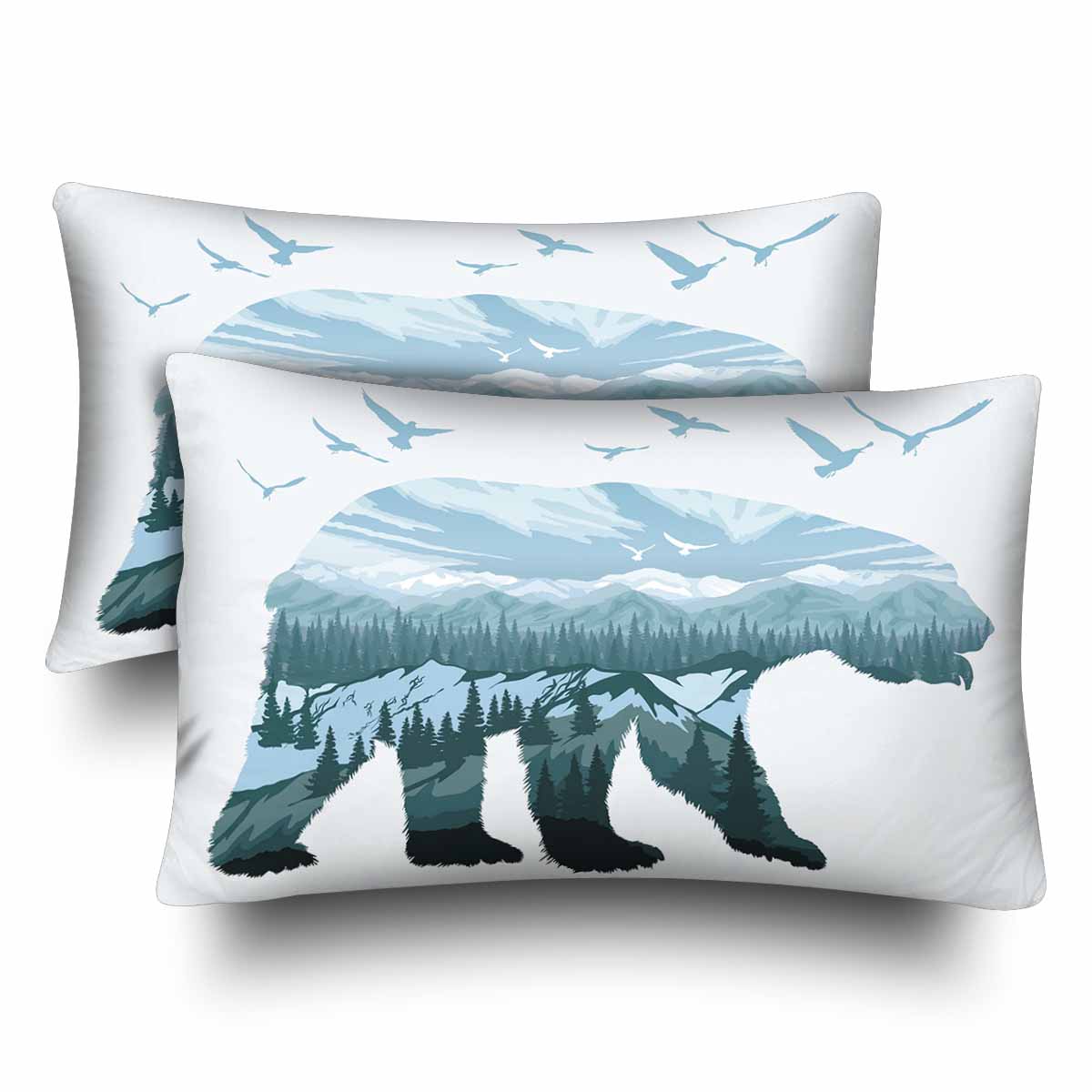 Animals themed Rectangle Pillow Cases printed Double exposure bear and forest mountain landscape
