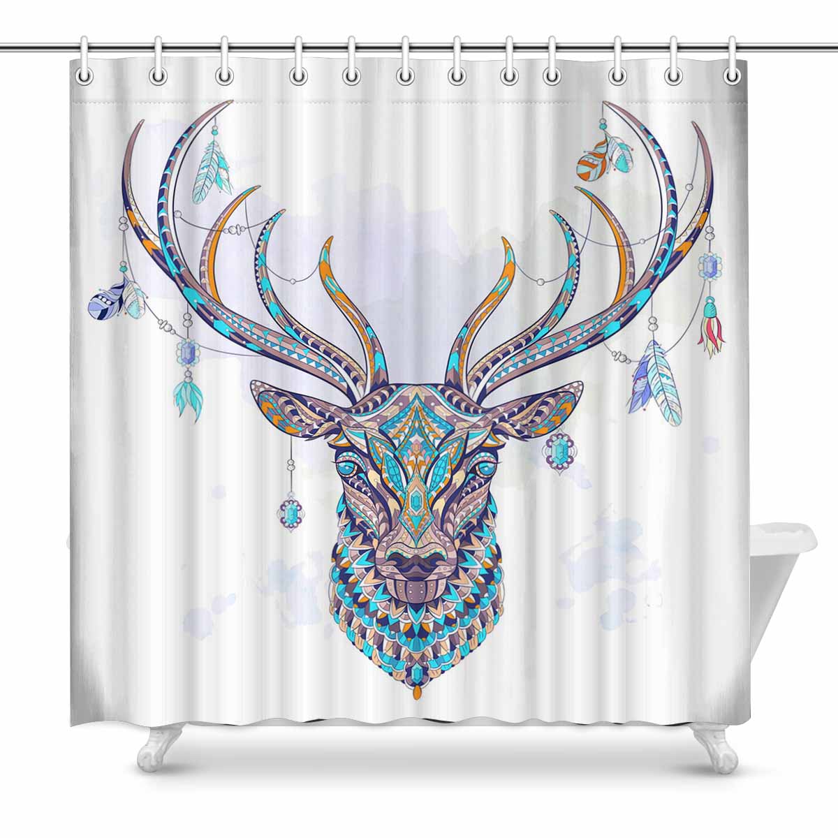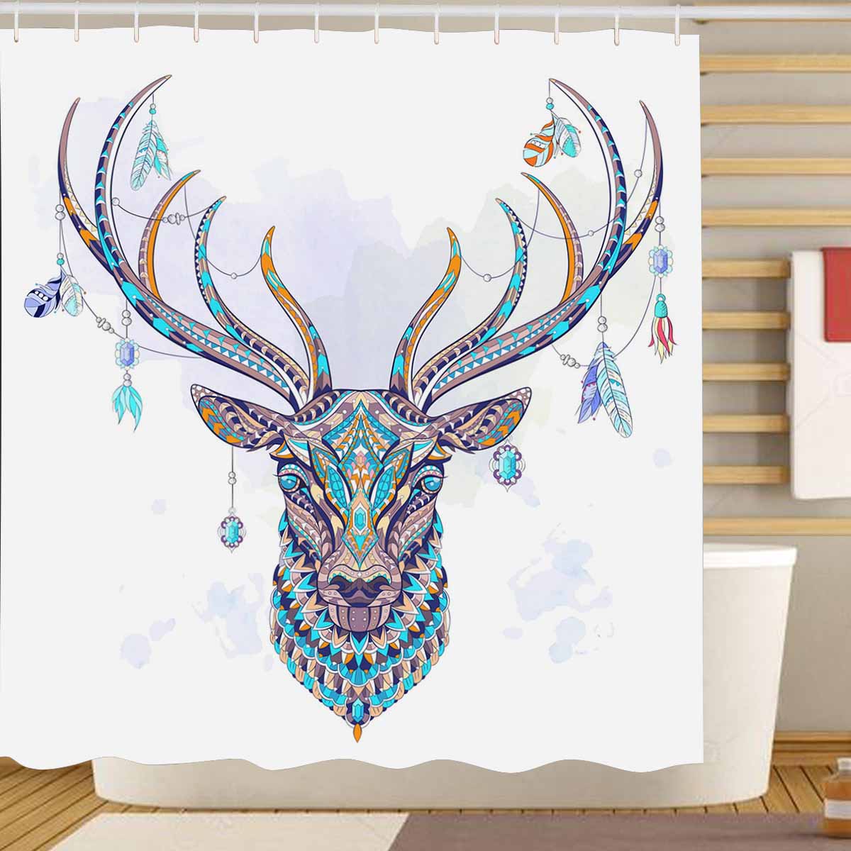 Shower Curtains print with Patterned head of the deer on the grunge background