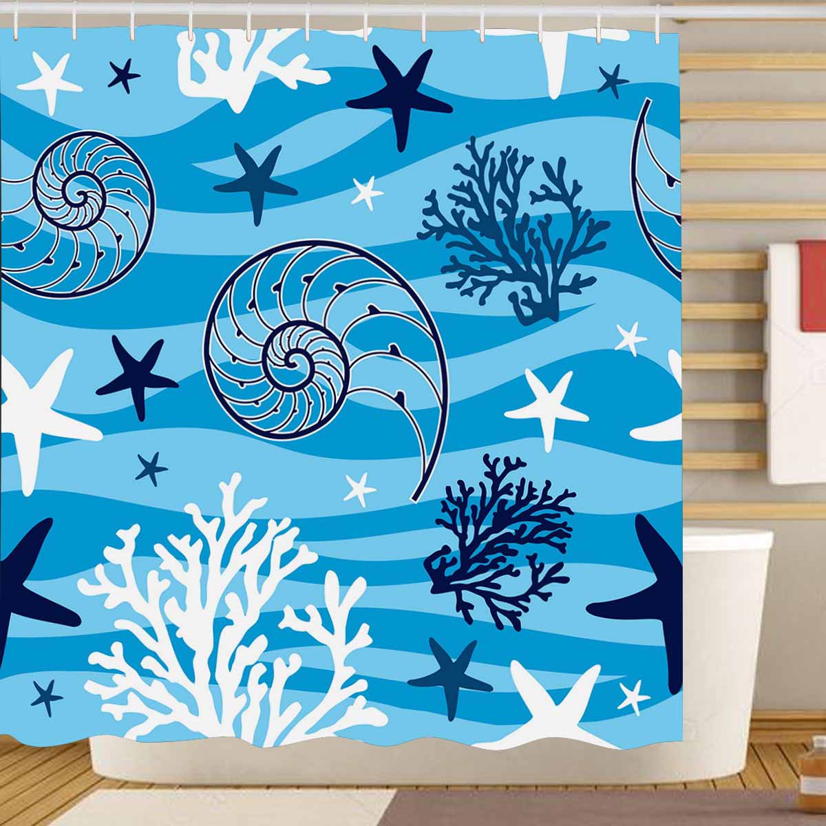 Designed for standardized bath tubs, fitted with C-shaped curtain hooks. Tough durable waterproof polyester fabric, preventing water from splashing out of the shower stall. One-side printing, using heat dye sublimation technique, long-lasting effects.