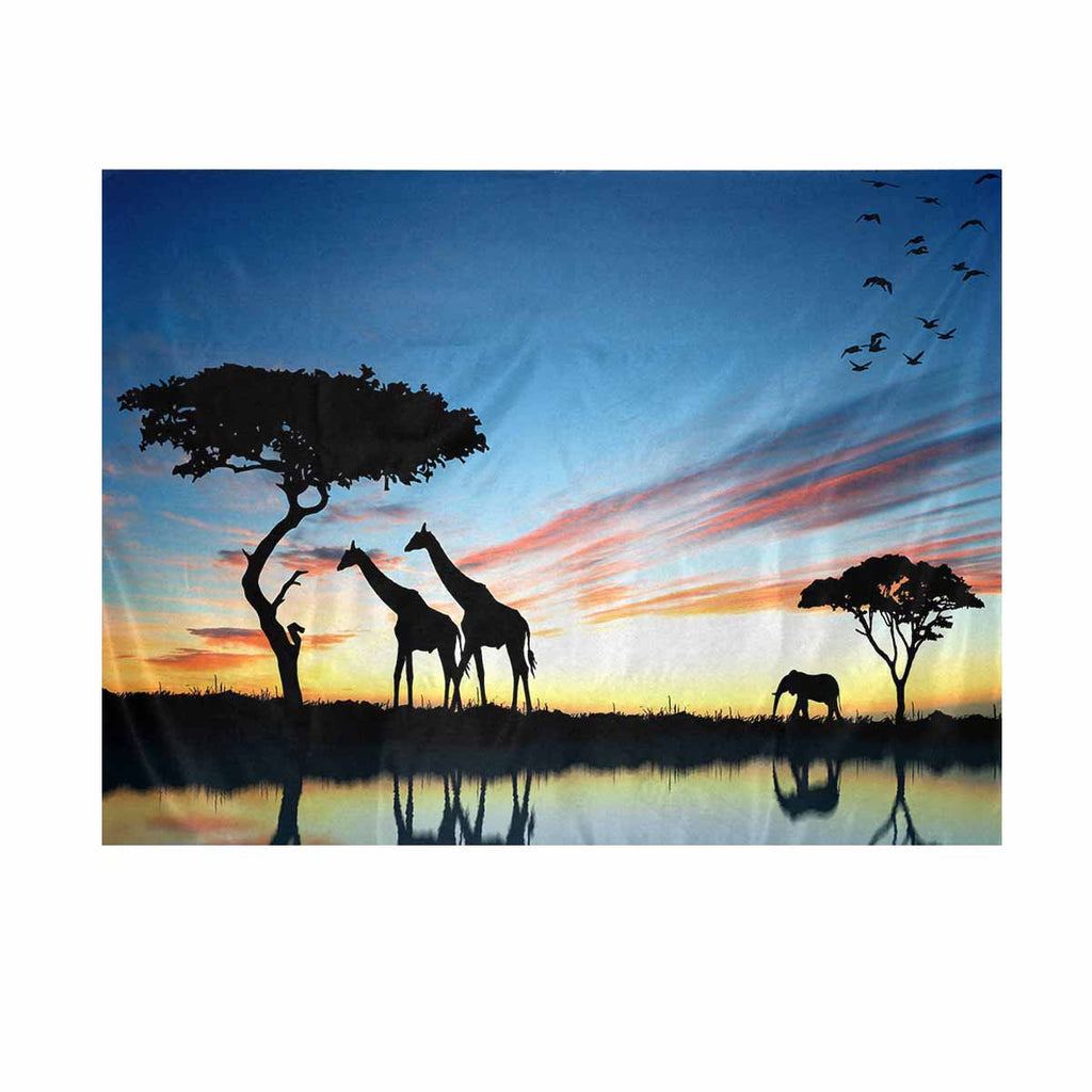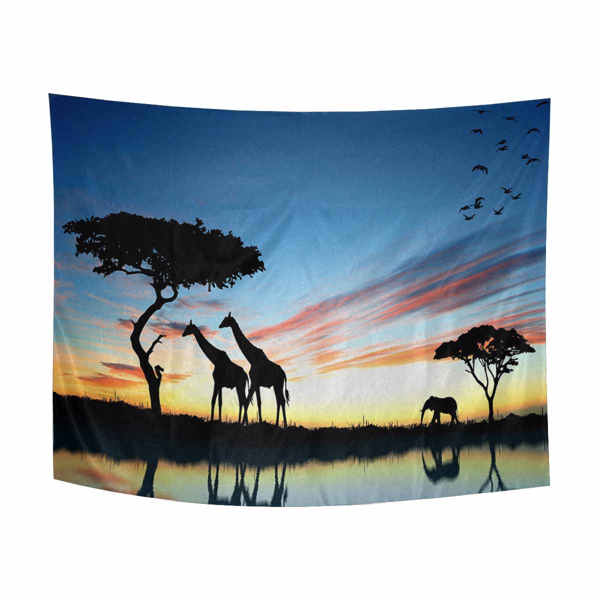 Animals themed Wall Tapestries print with Silhouette of wild animals reflection in water