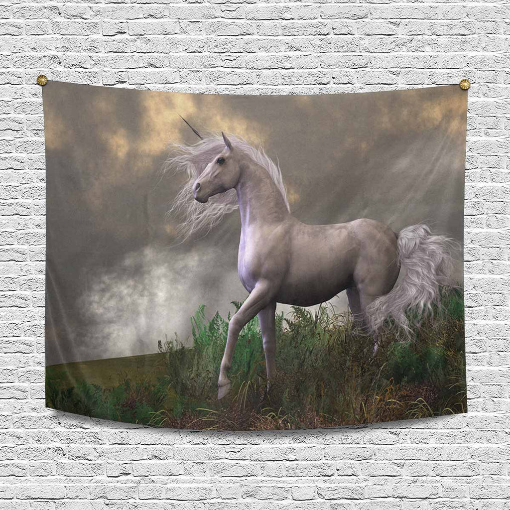 Animals themed Wall Tapestries print with White Unicorn Stallion