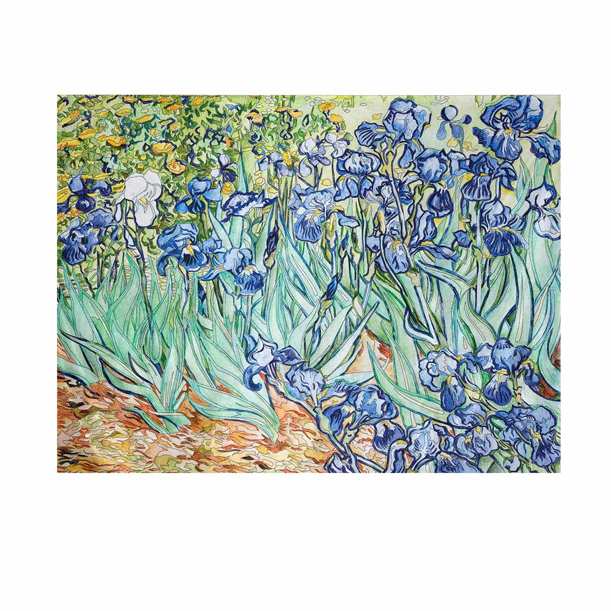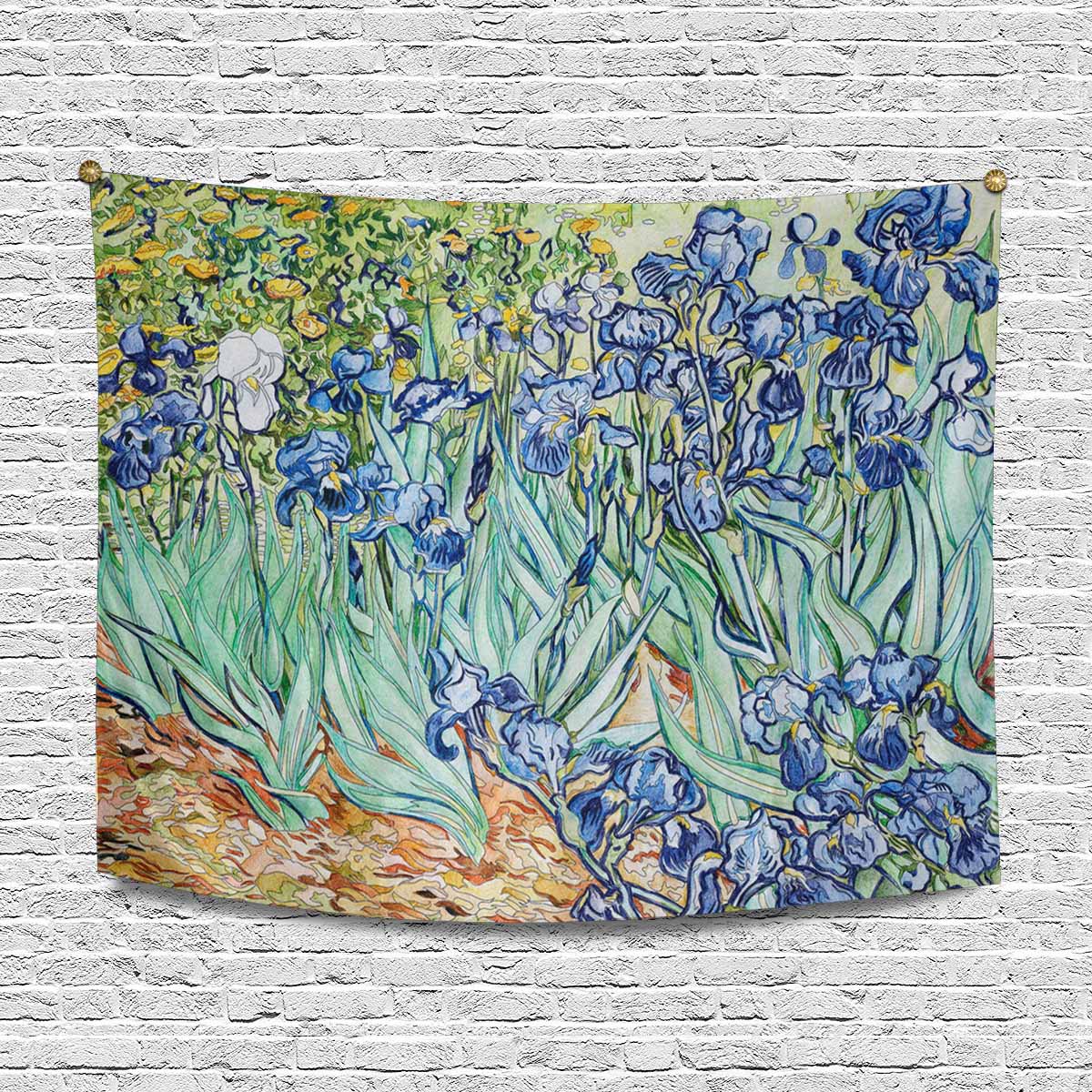 Arts themed Wall Tapestry printed Irises (1889) by Vincent van Gogh adult coloring page