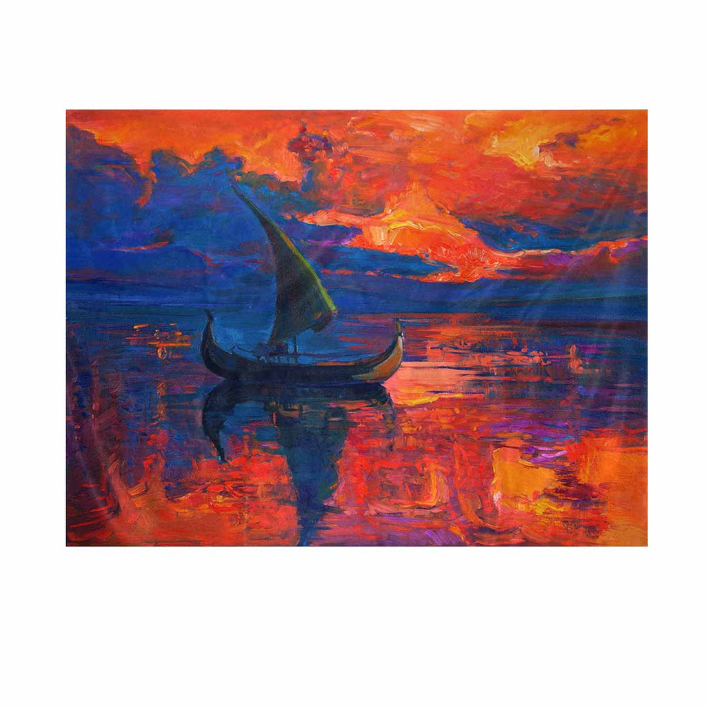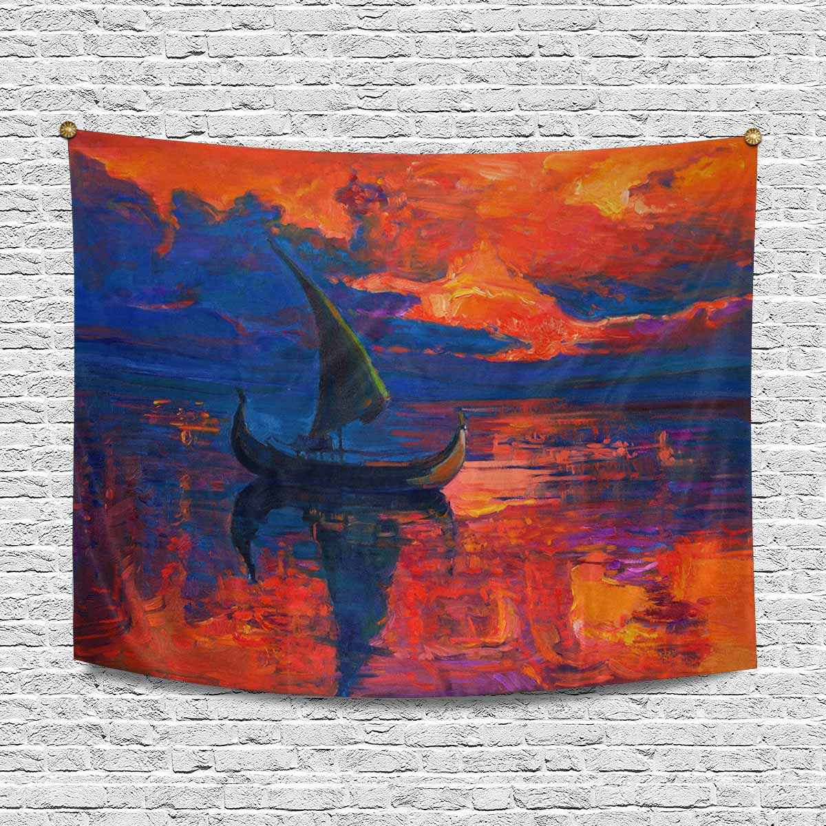 Arts themed Wall Tapestry printed xOriginal oil painting of boat and sea